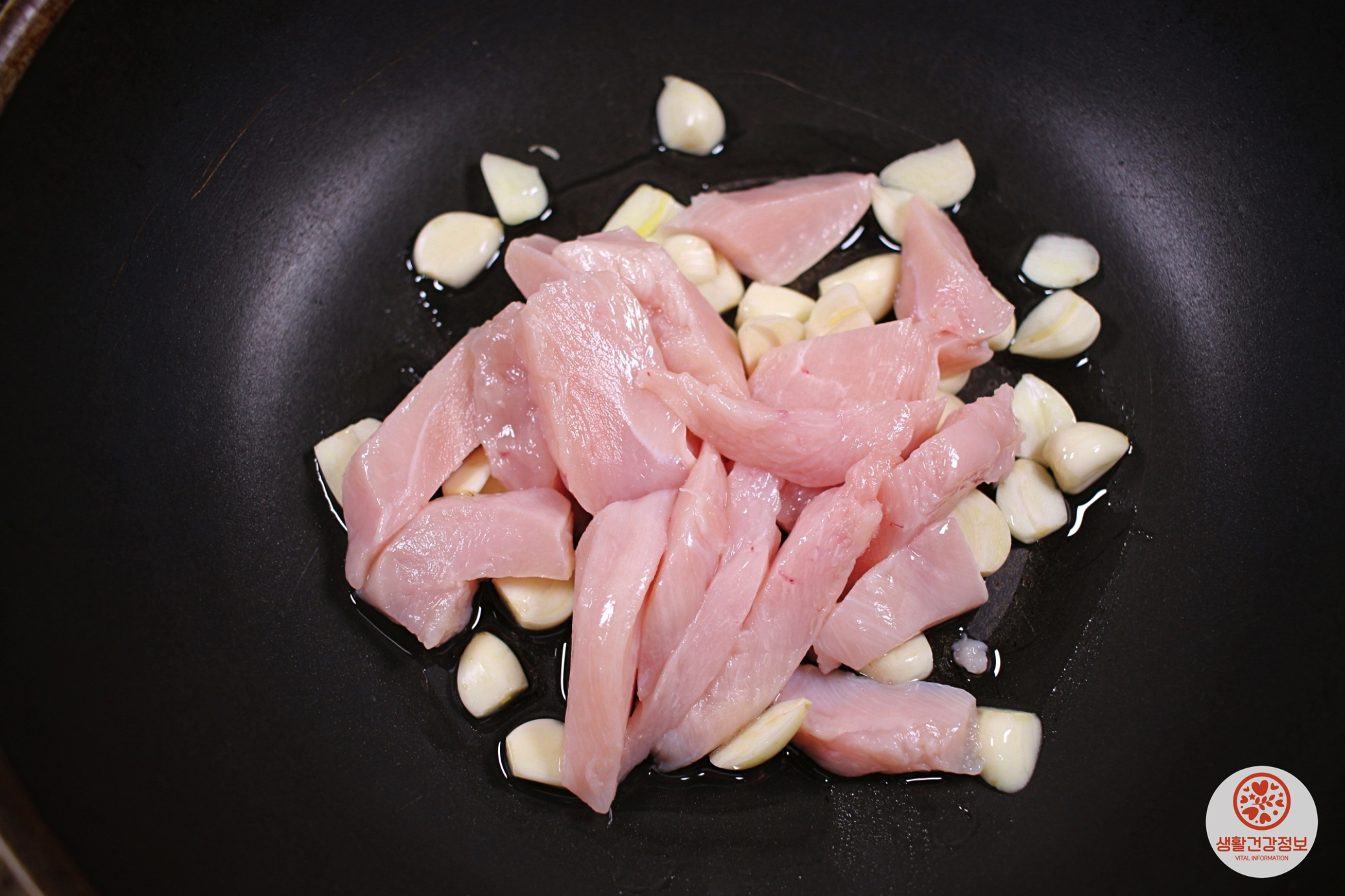 올리브오일을 두르고 편마늘을 볶다가