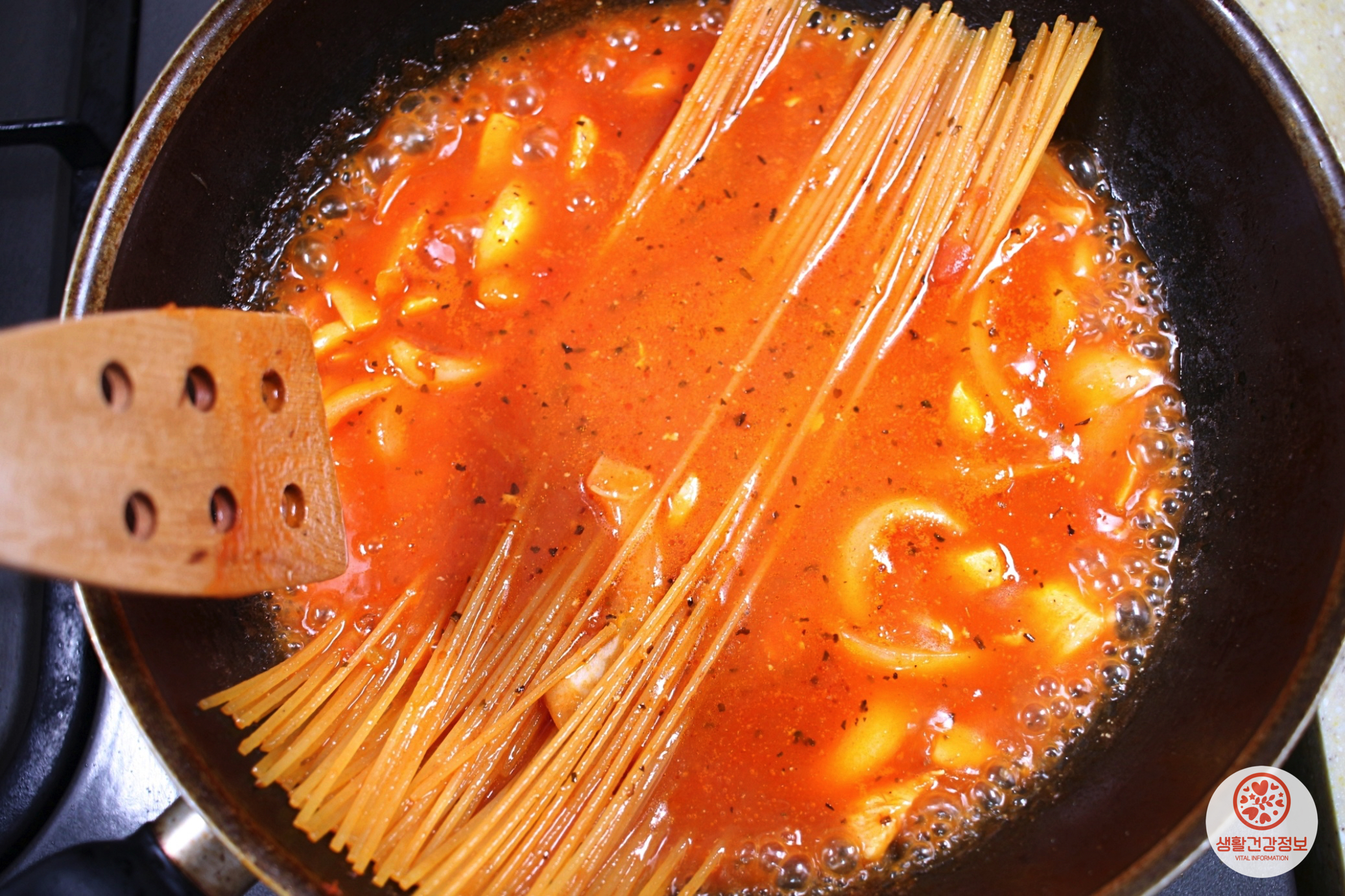 스파게티면이 눌어붙지 않게 저어주다 보면