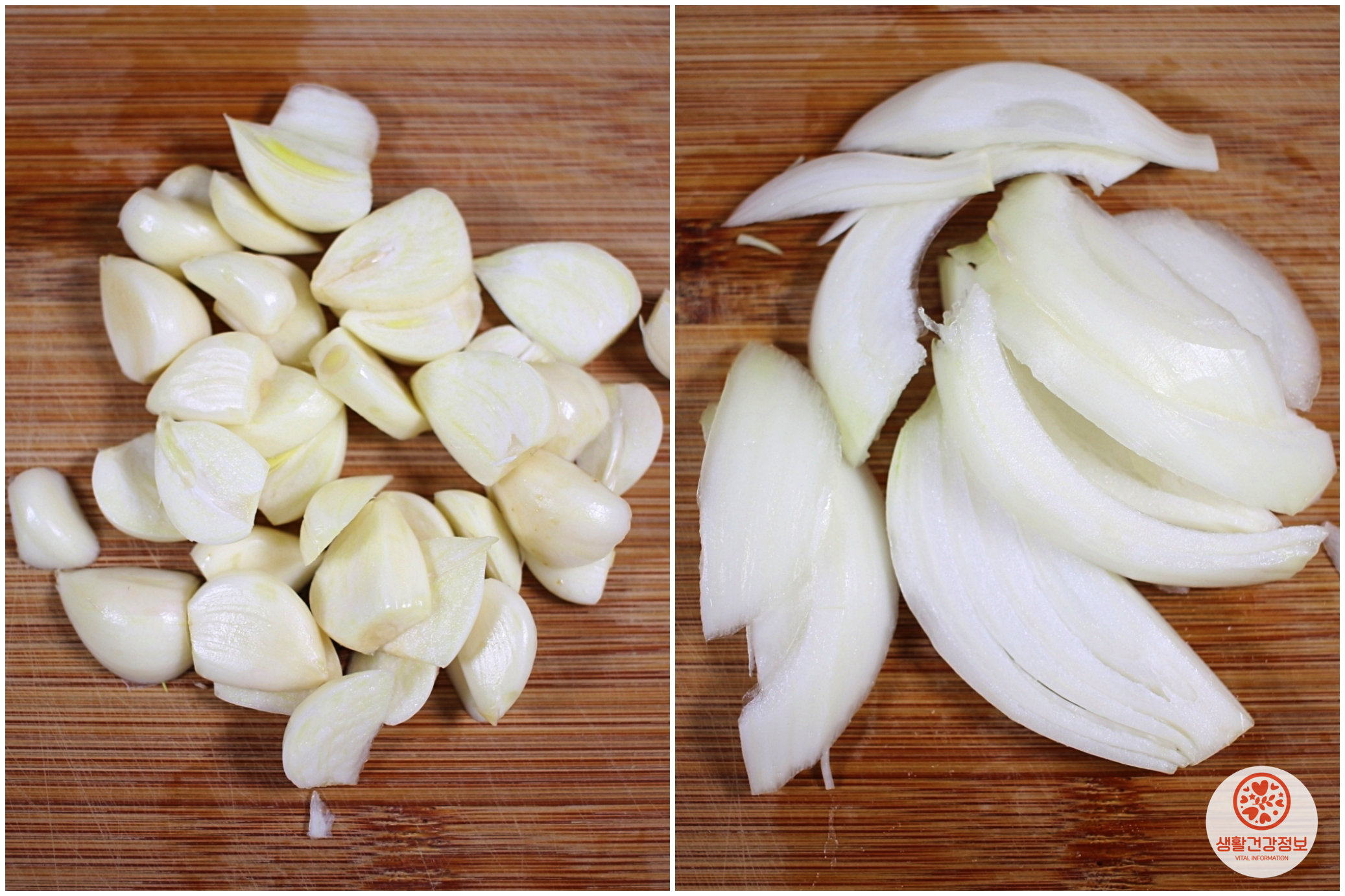 마늘과 양파는 적당한 두께로 썰어주시고요.