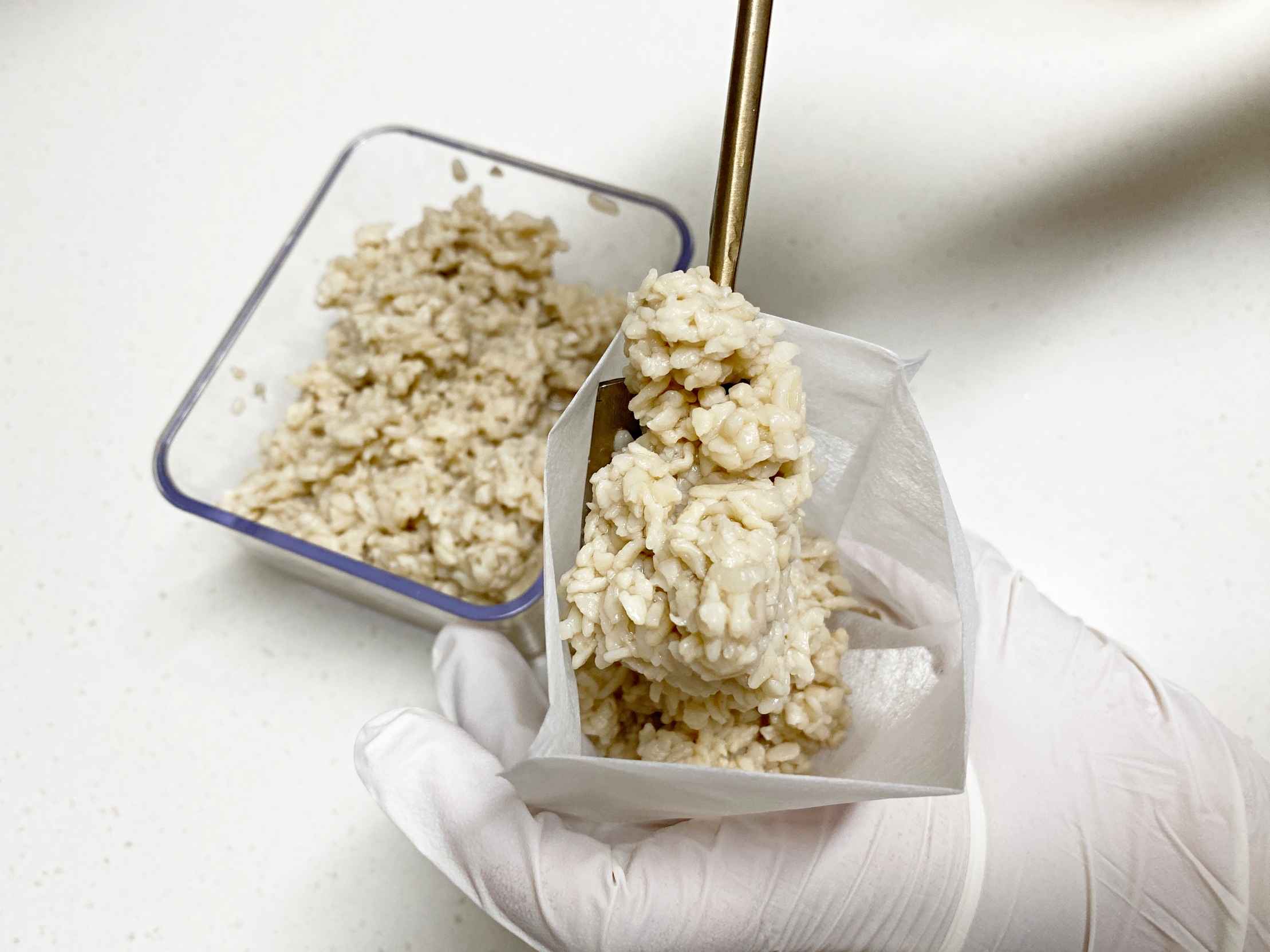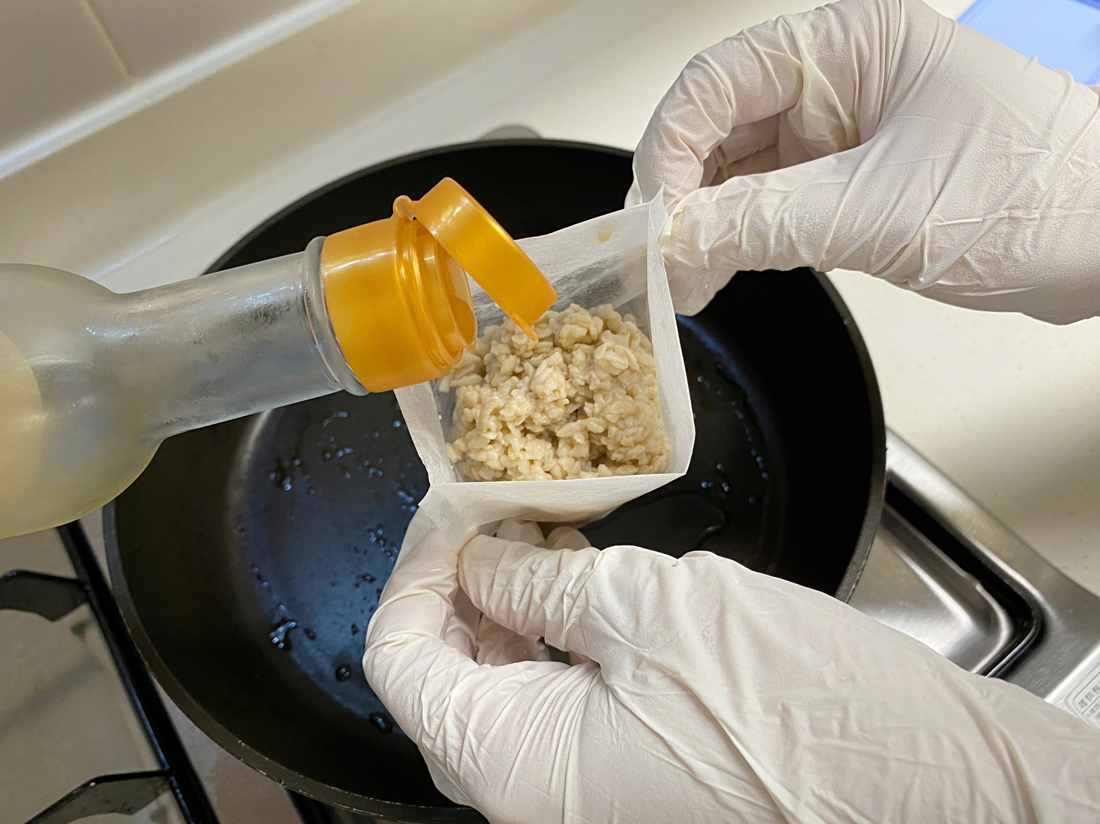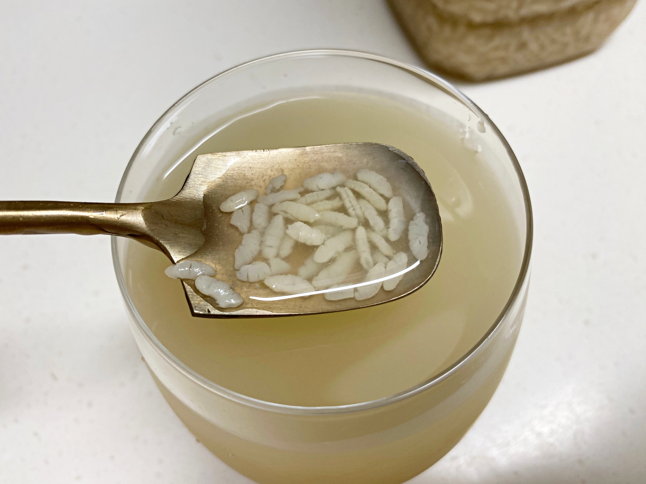 이때 키친타월 대신 식혜 밥알을 쓰는거예요.