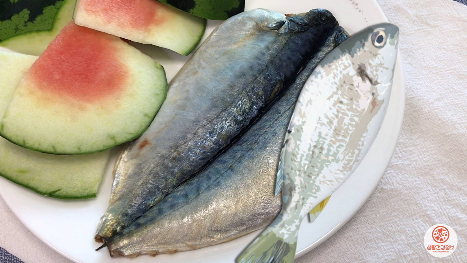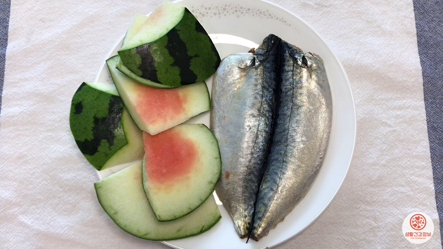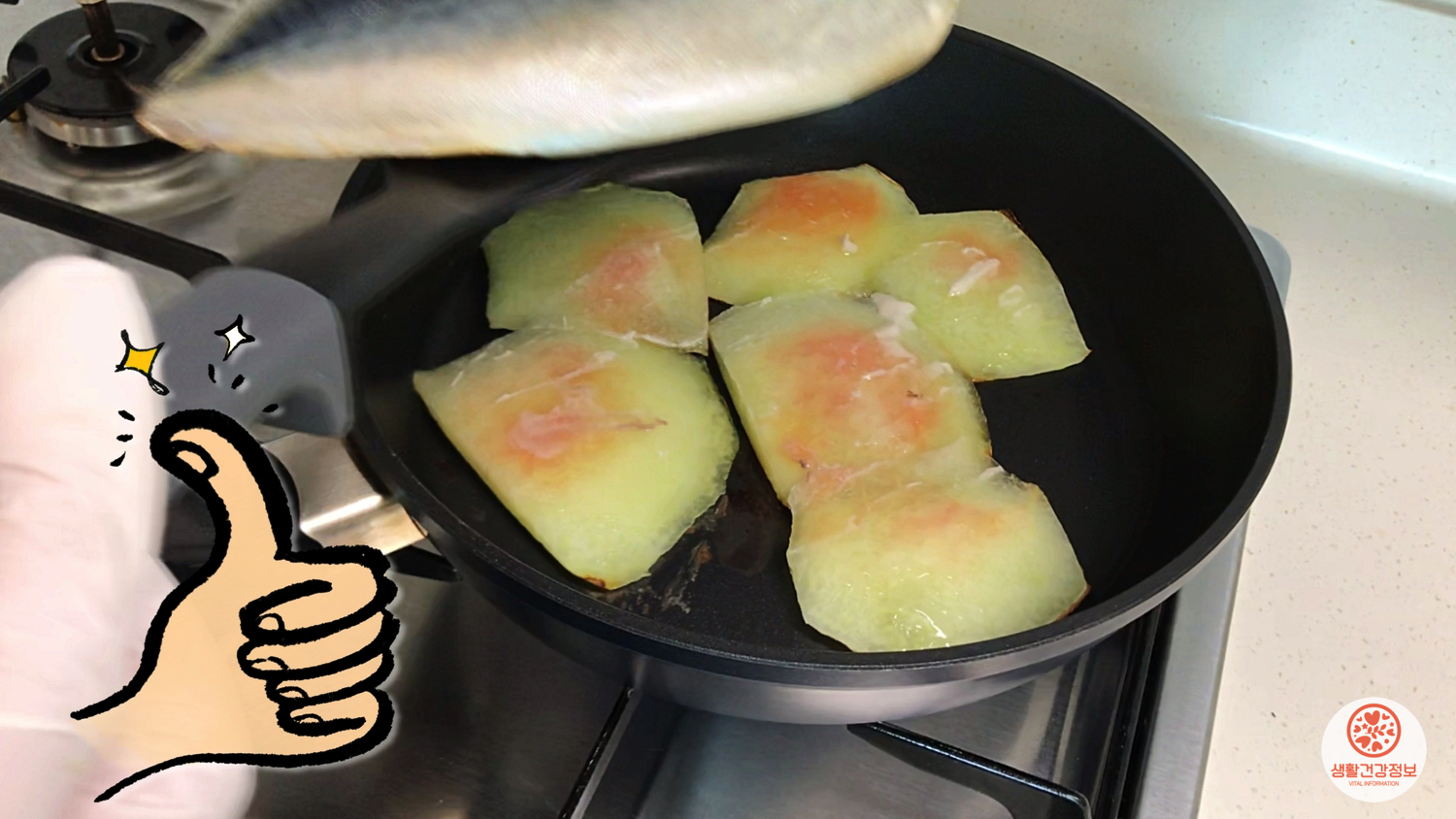 수박껍질과 고등어를 같이 굽는게 포인트에요.