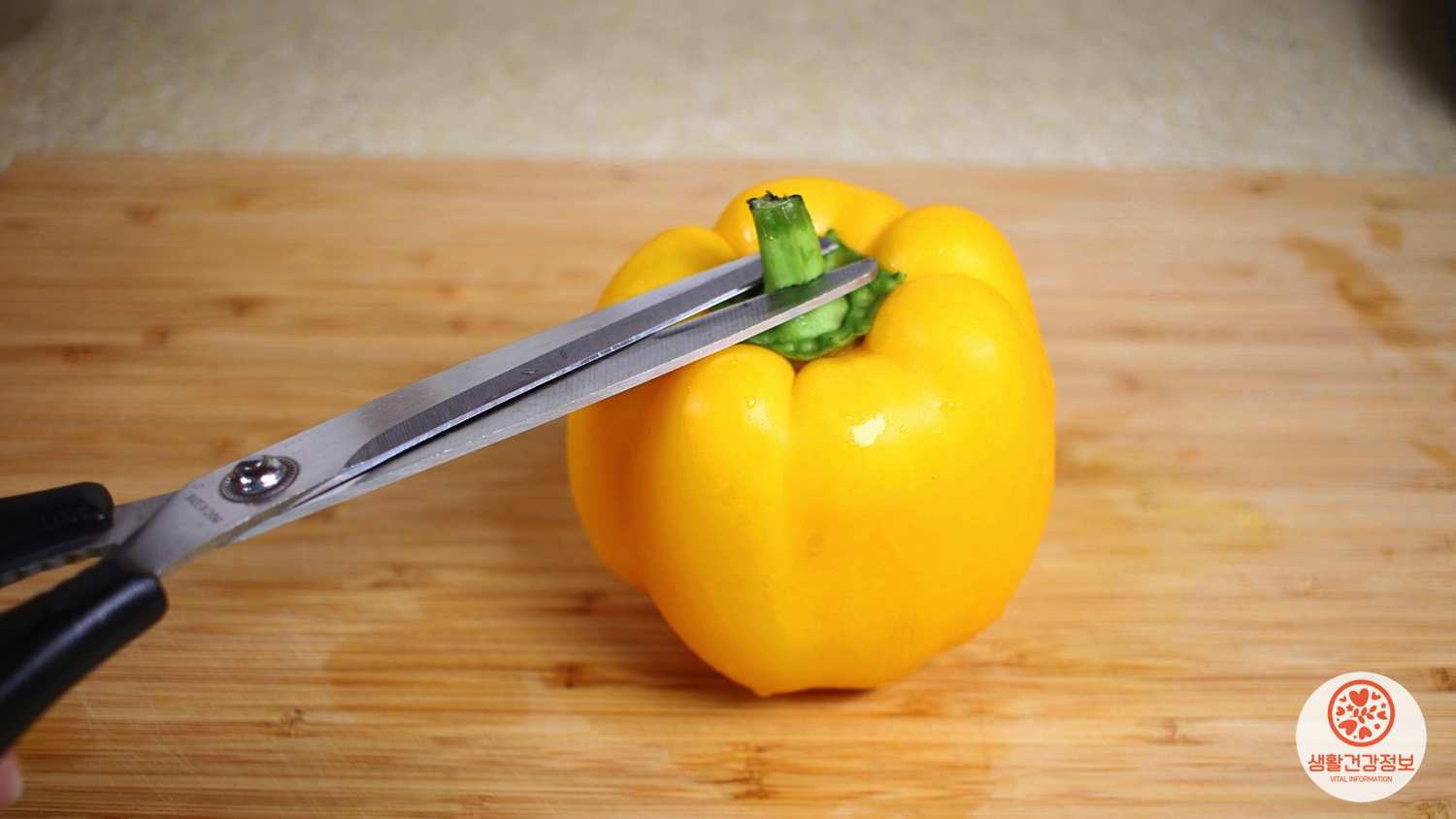 파프리카 꼭지를 깔끔하게 제거해줘요.