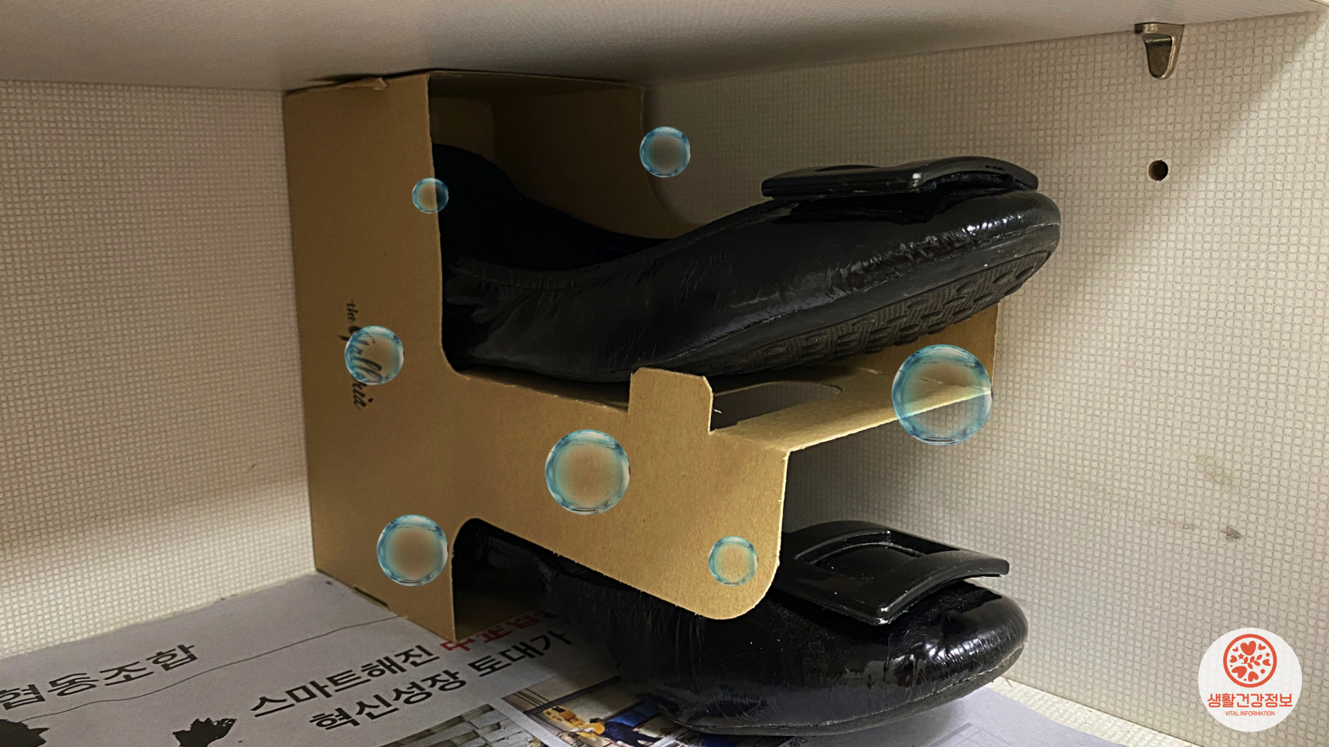 신발장 바닥에 신문지를 깔고