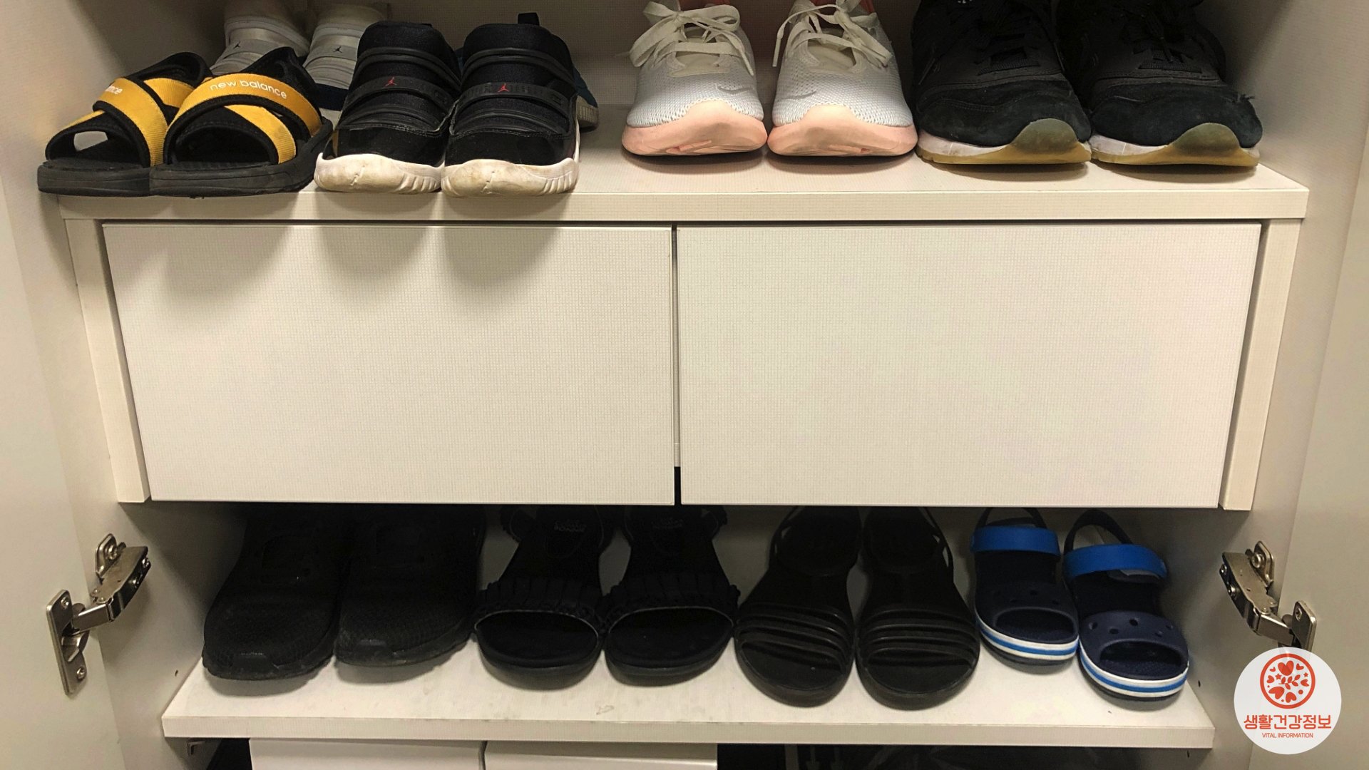 신발끼리 겹쳐서 보관하는건 기본이죠.