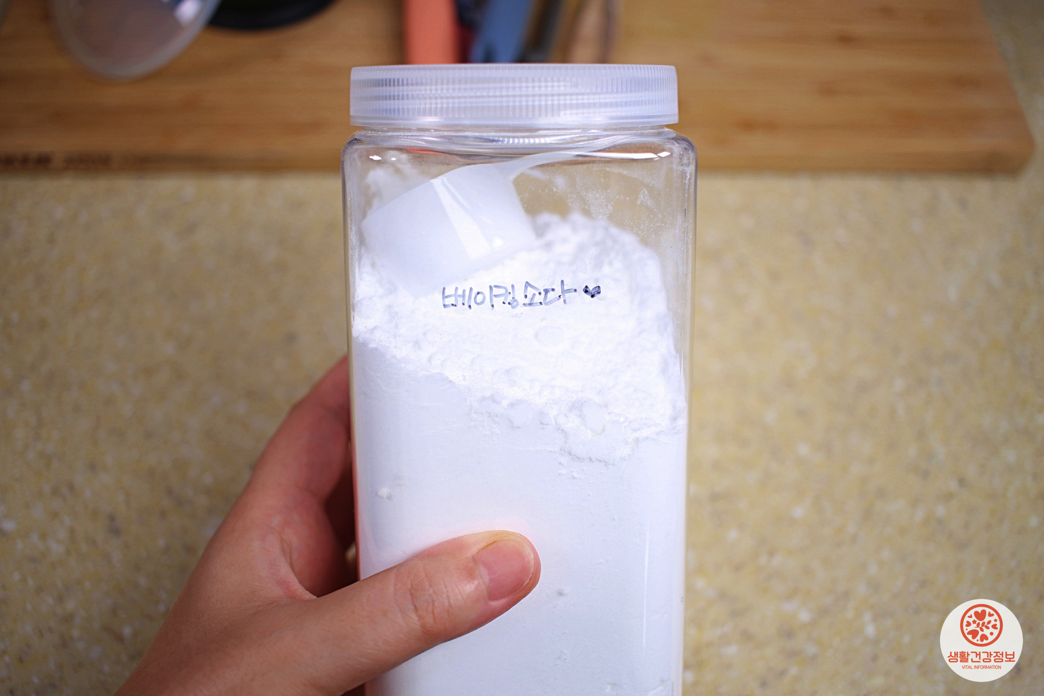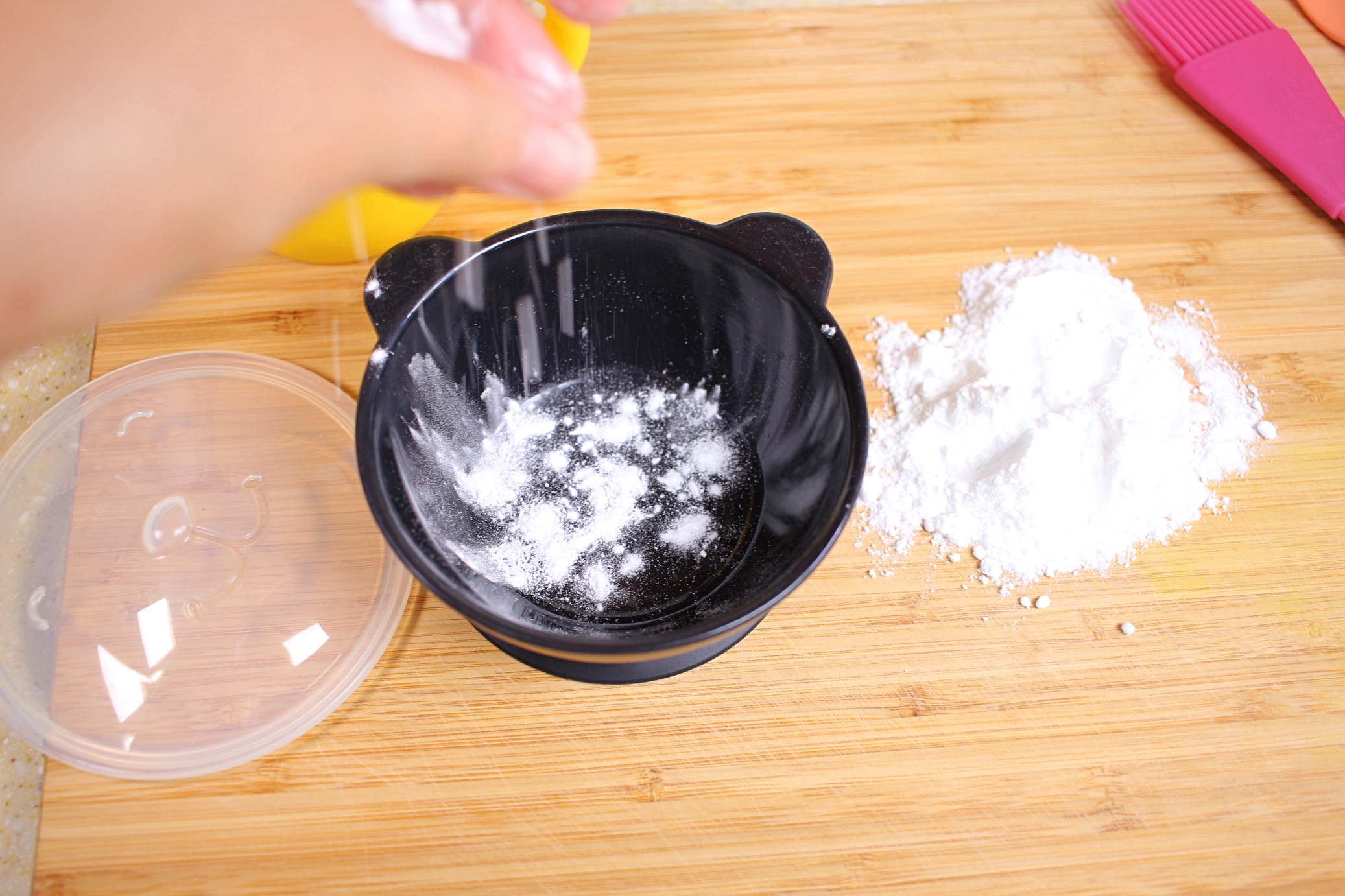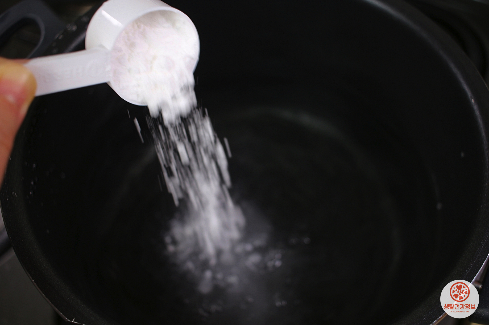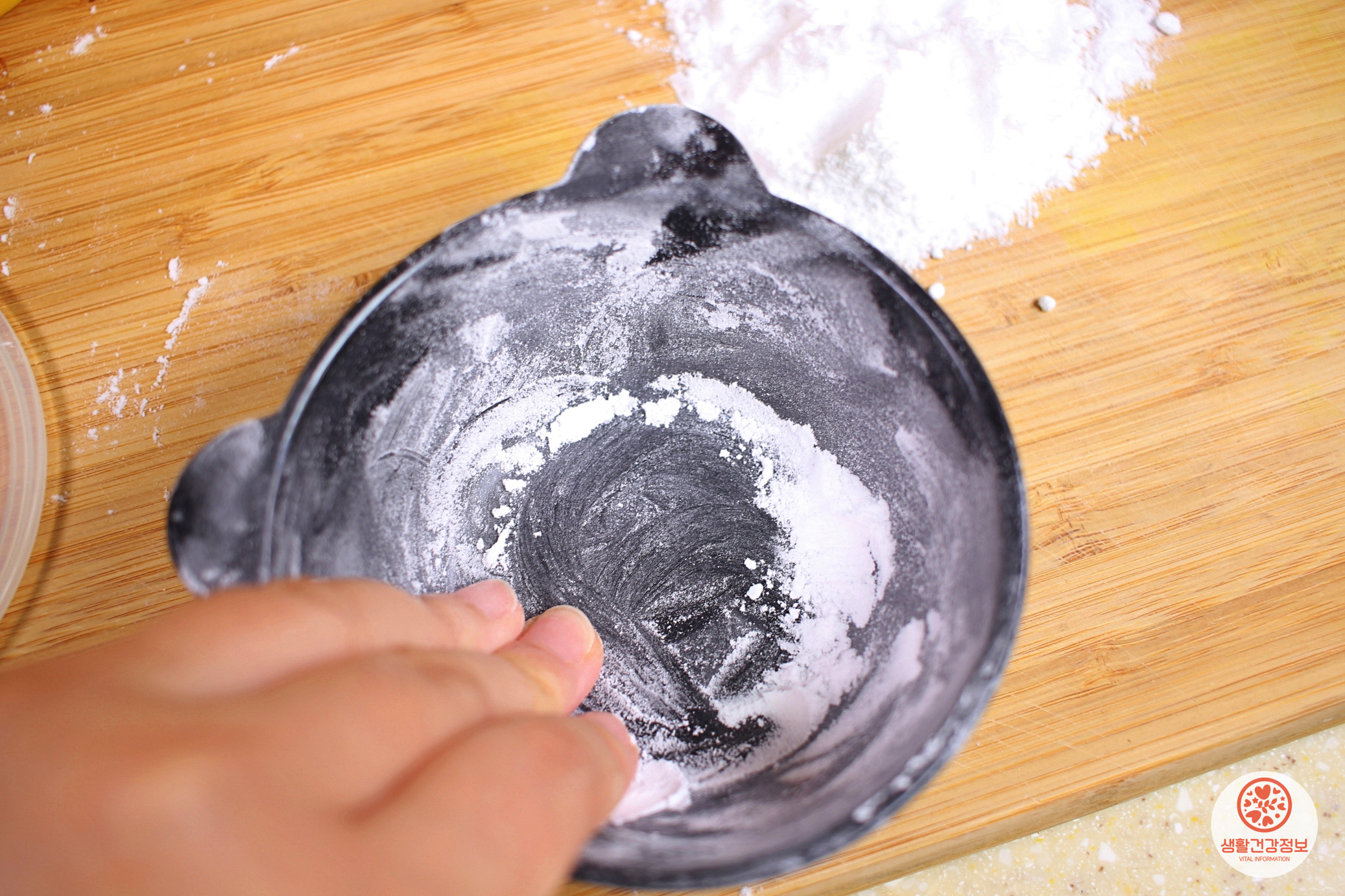실리콘 주방용품에 베이킹소다를 뿌리고