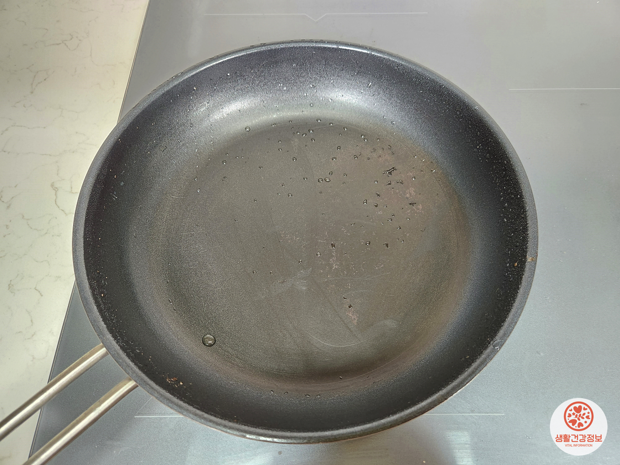 기름기 가득한 후라이팬에 물을 반쯤 채우고