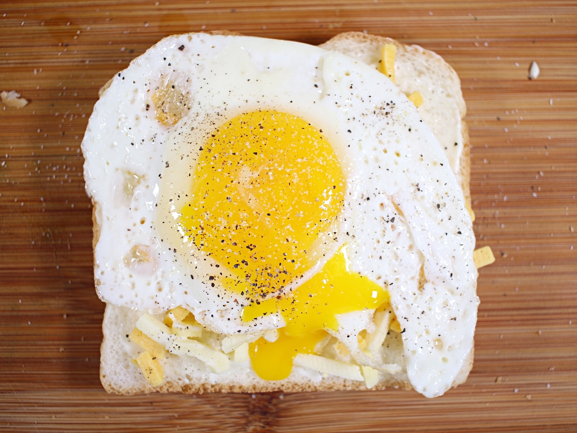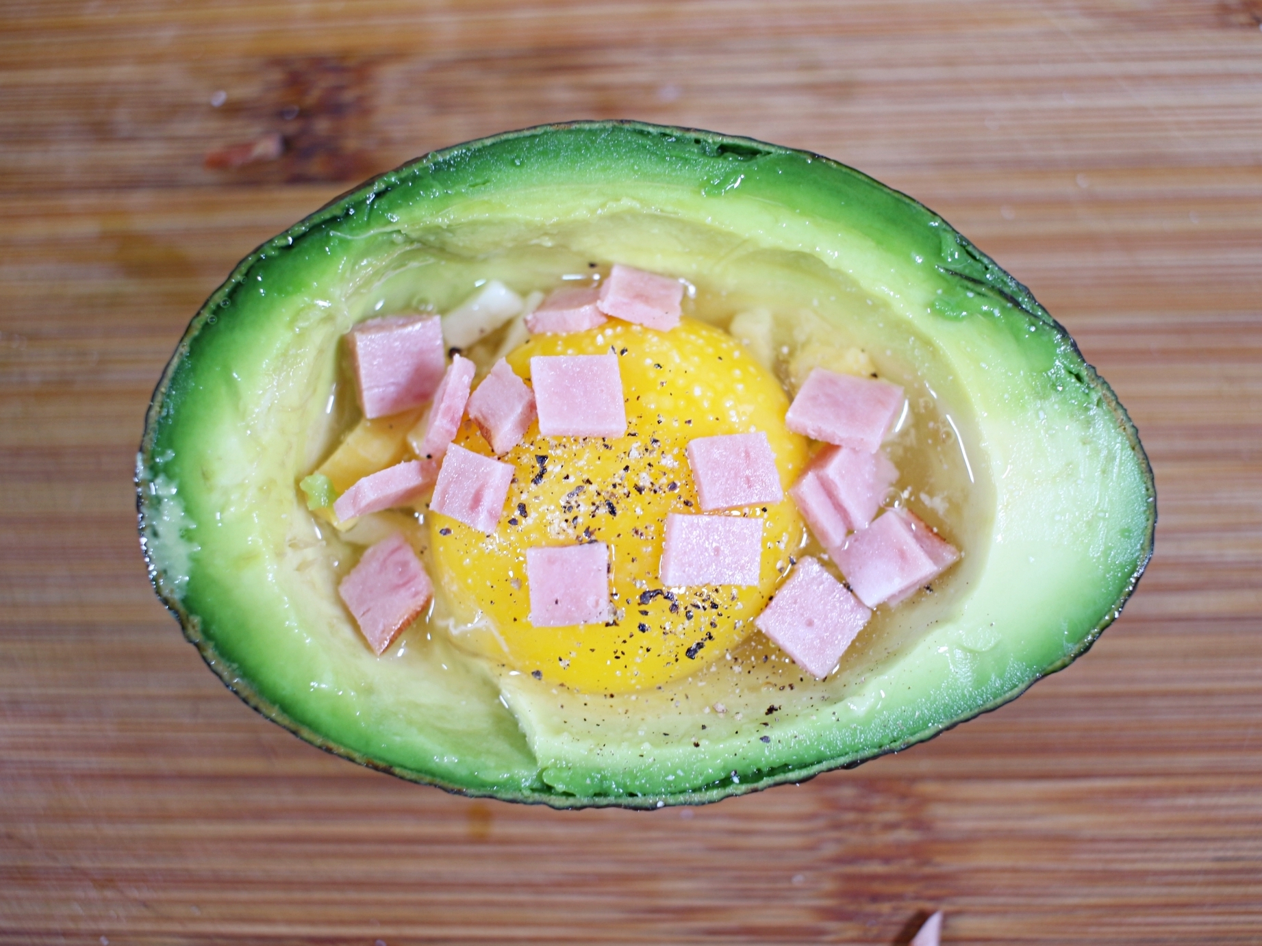 소금, 후추로 밑간을 하고 슬라이스햄 올려서 마무리해요.