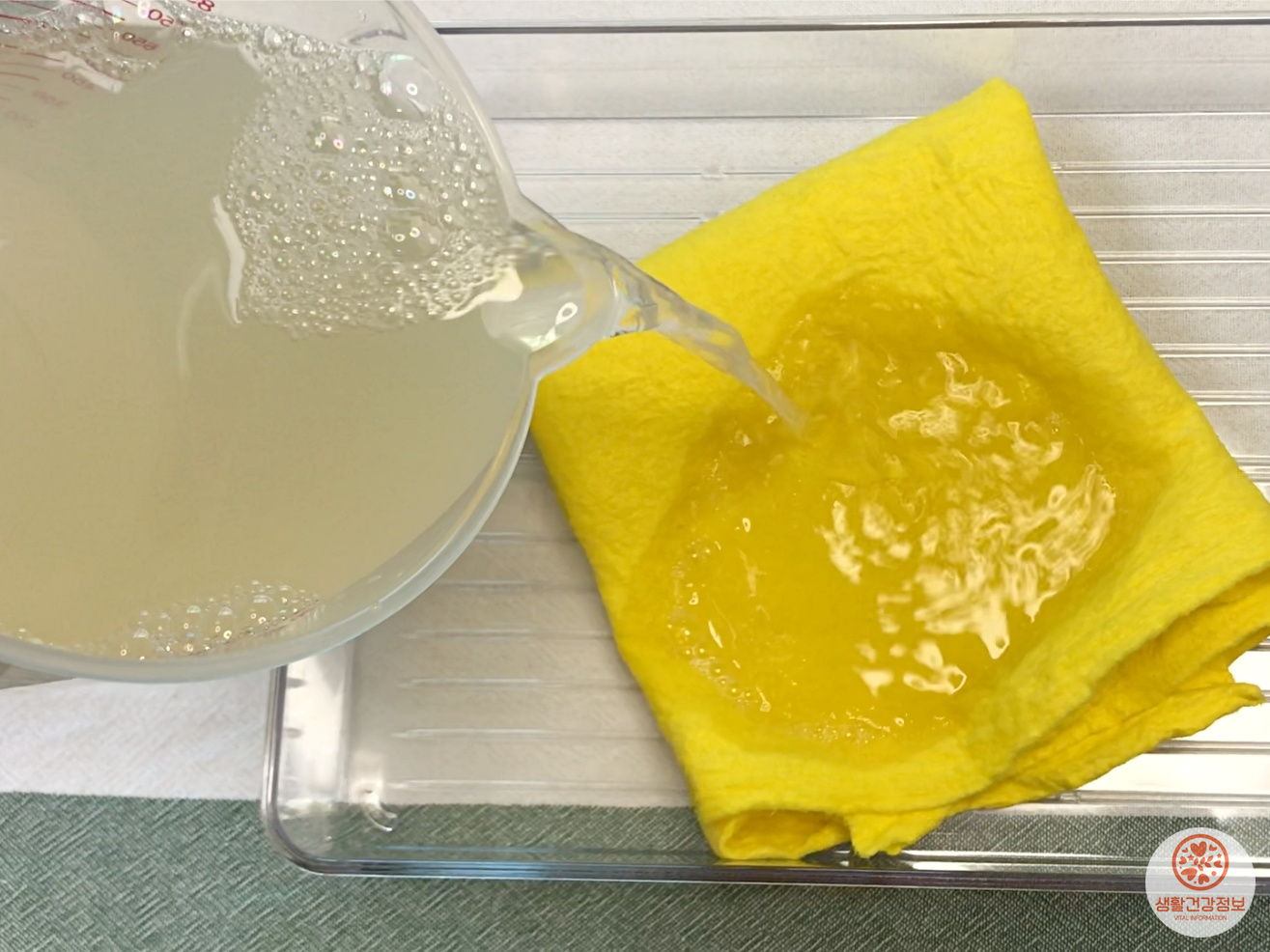 행주가 잠길만큼의 특급세제를 부어주세요.