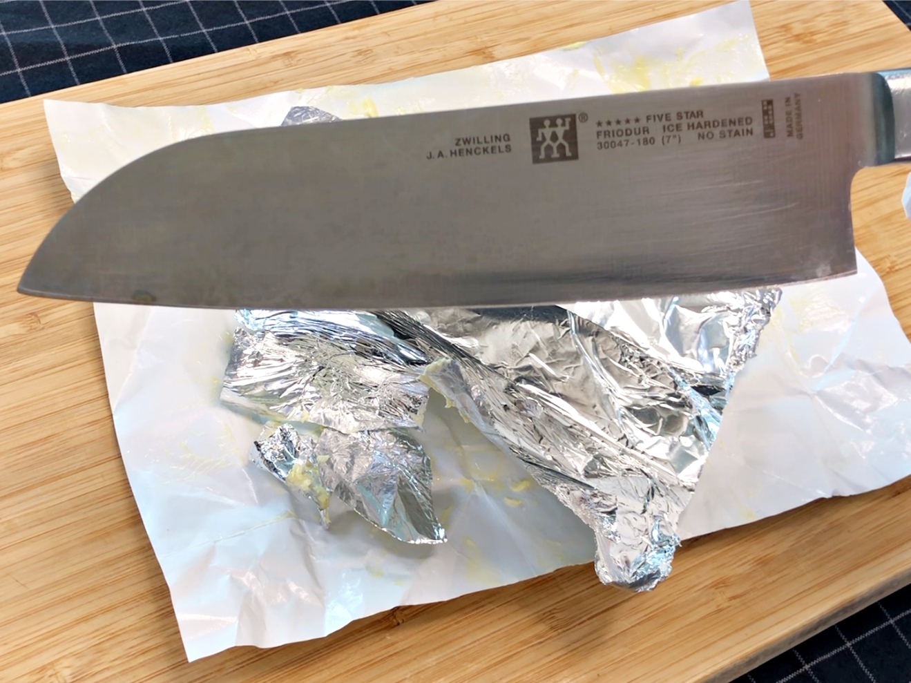 칼을 쿠킹호일로 감싸주세요.