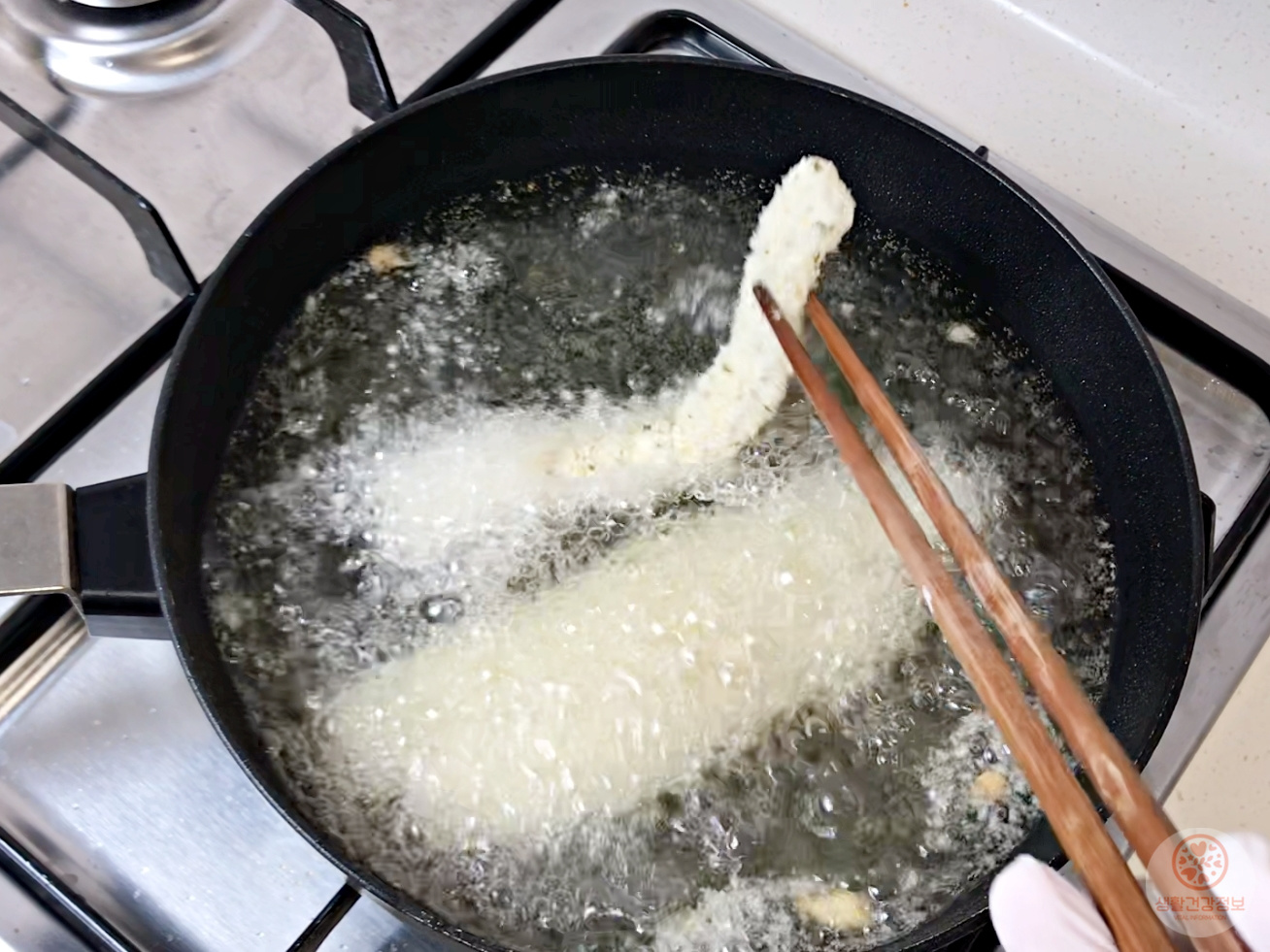 완벽한 튀김옷이 완성돼요.