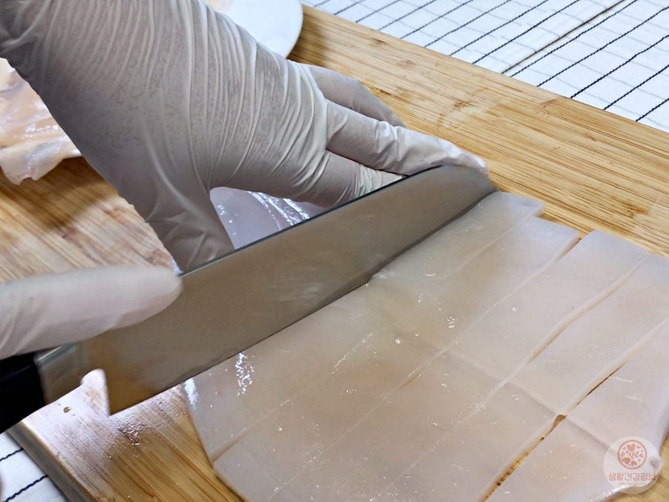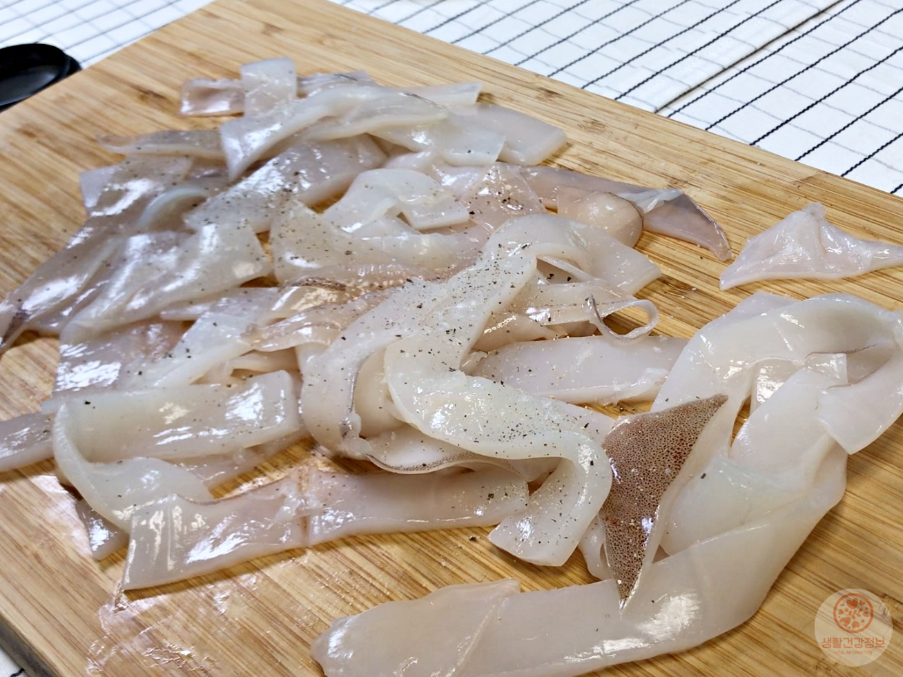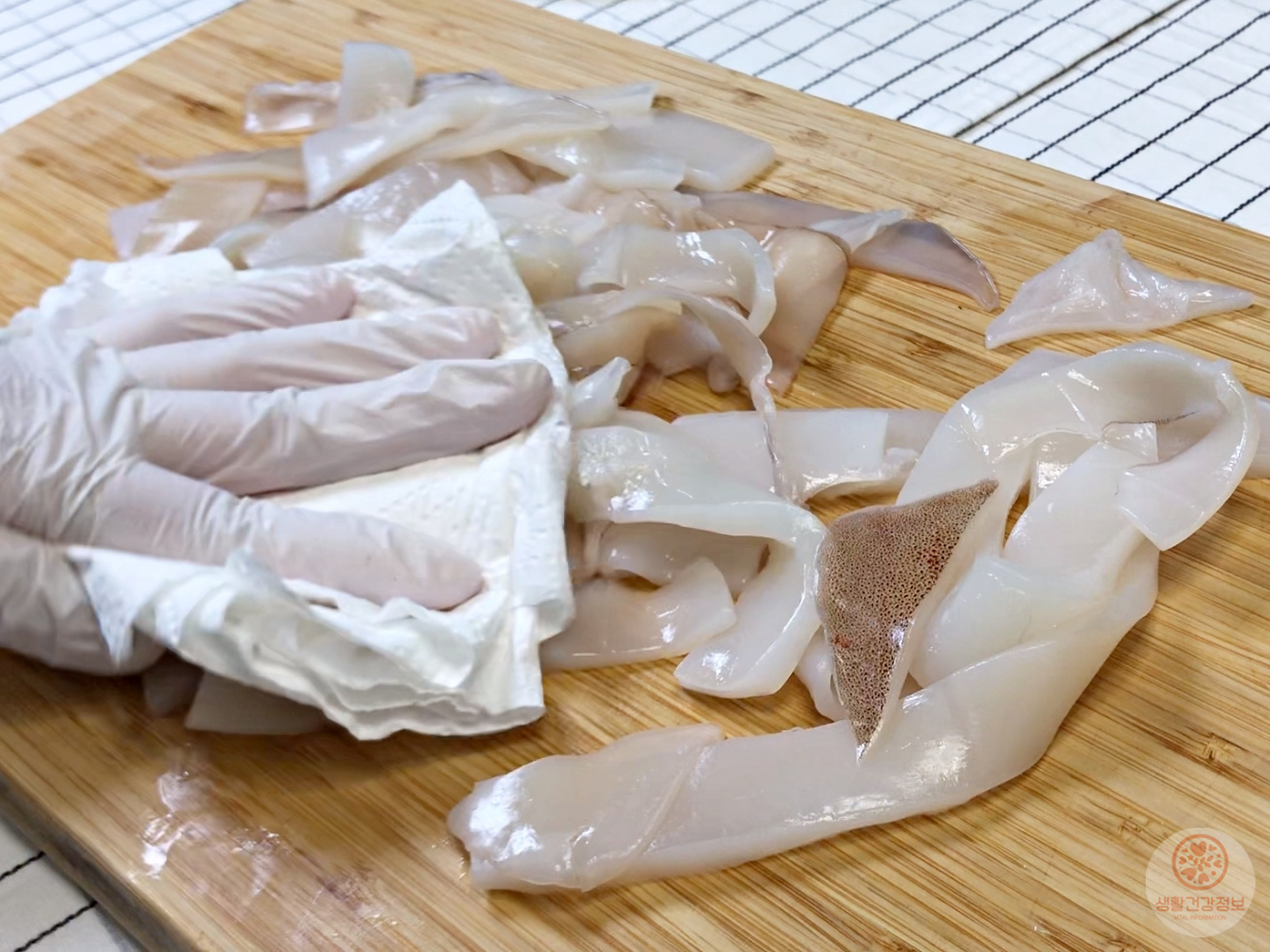 키친타월로 오징어의 물기를 제거해주세요.