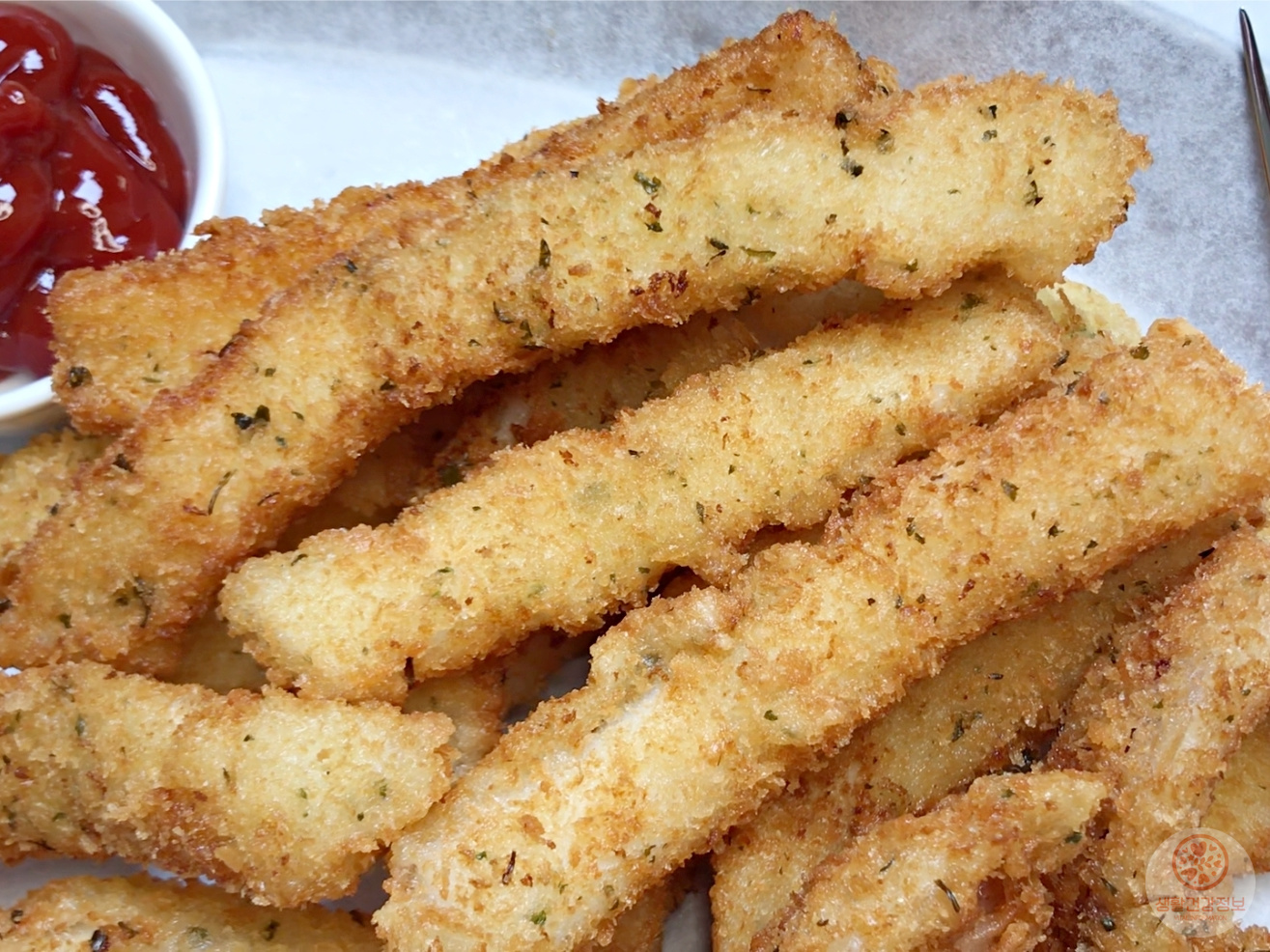저는 빵가루에 파슬리가루 섞어서 만들었어요.