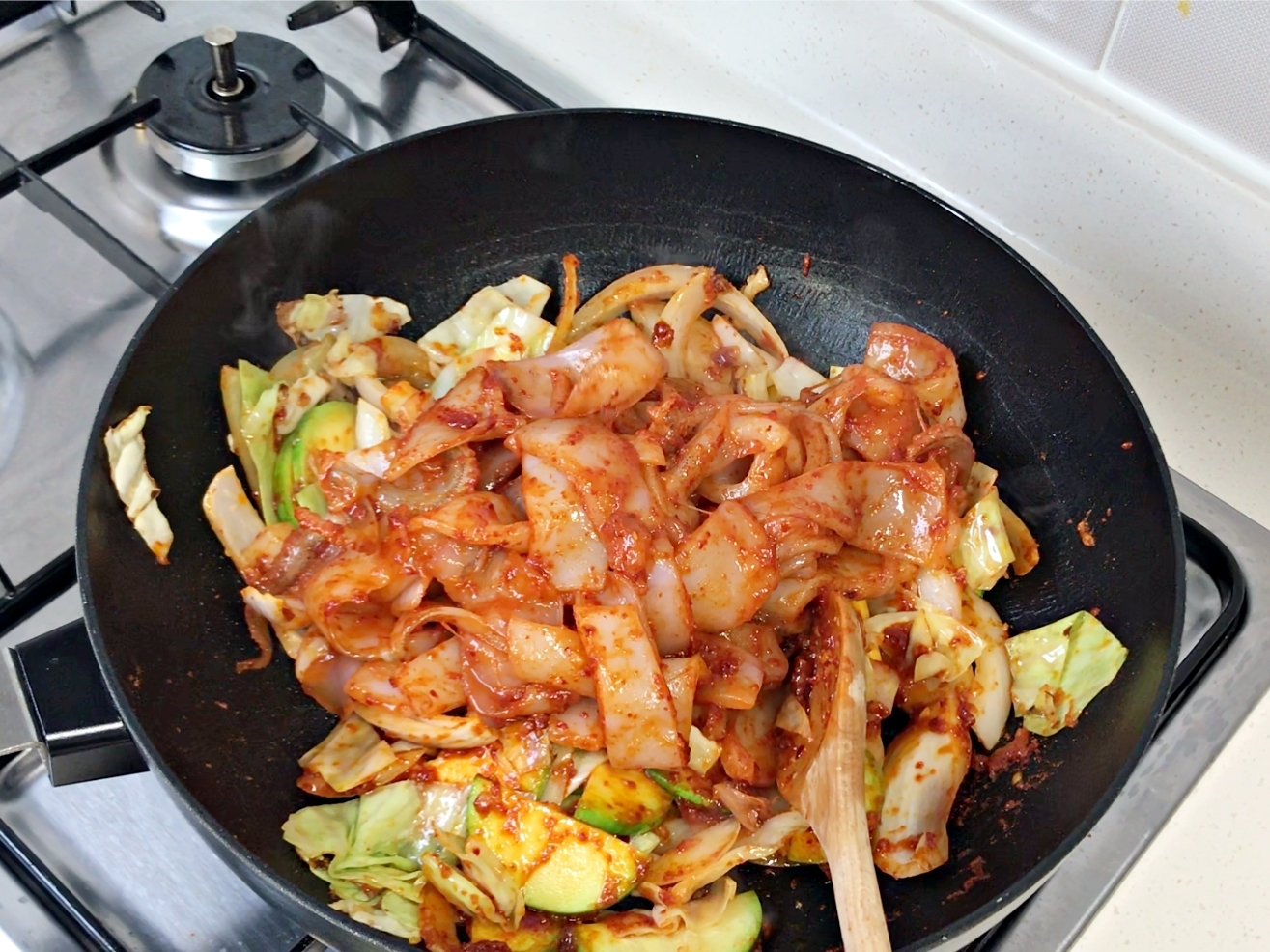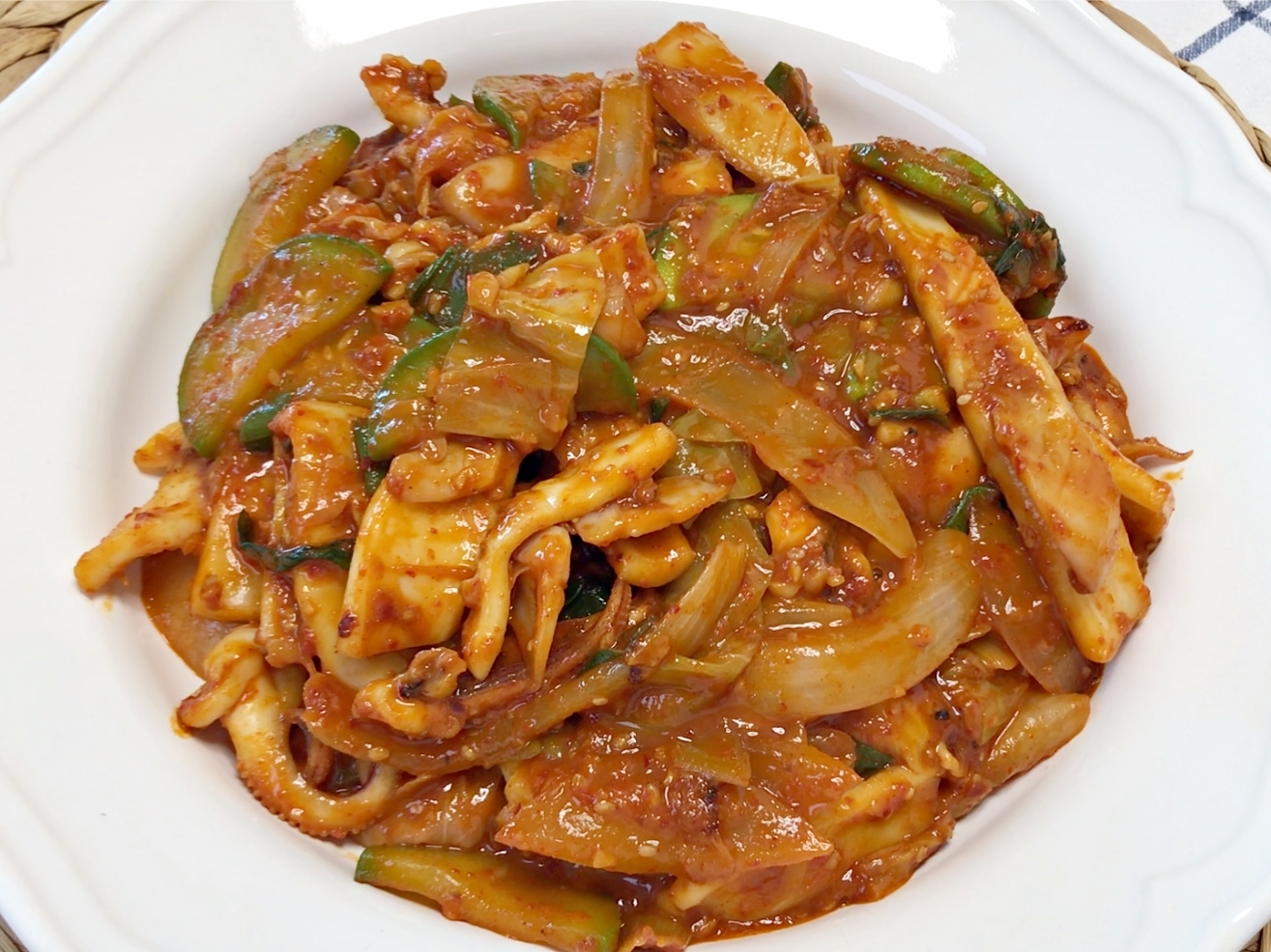 쫄깃한 오징어에 매콤달콤한 양념이 착 감기면