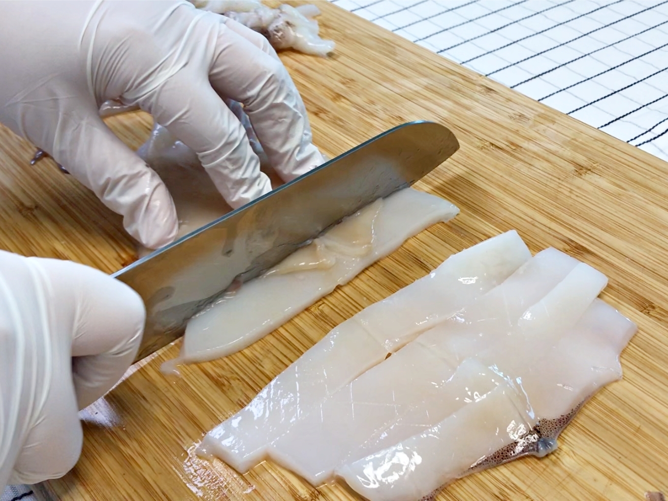 오징어도 씻어서 껍질을 벗긴 다음