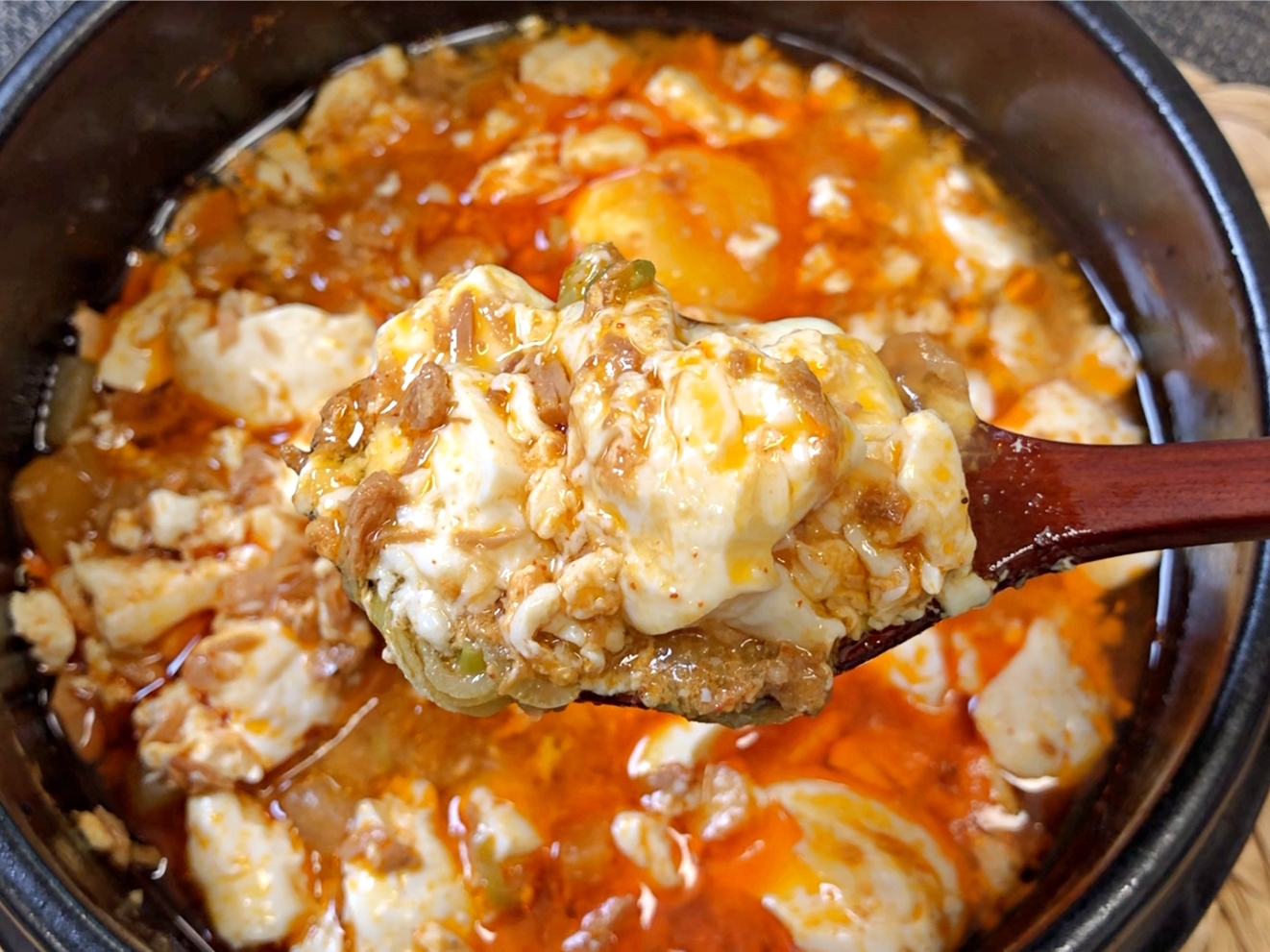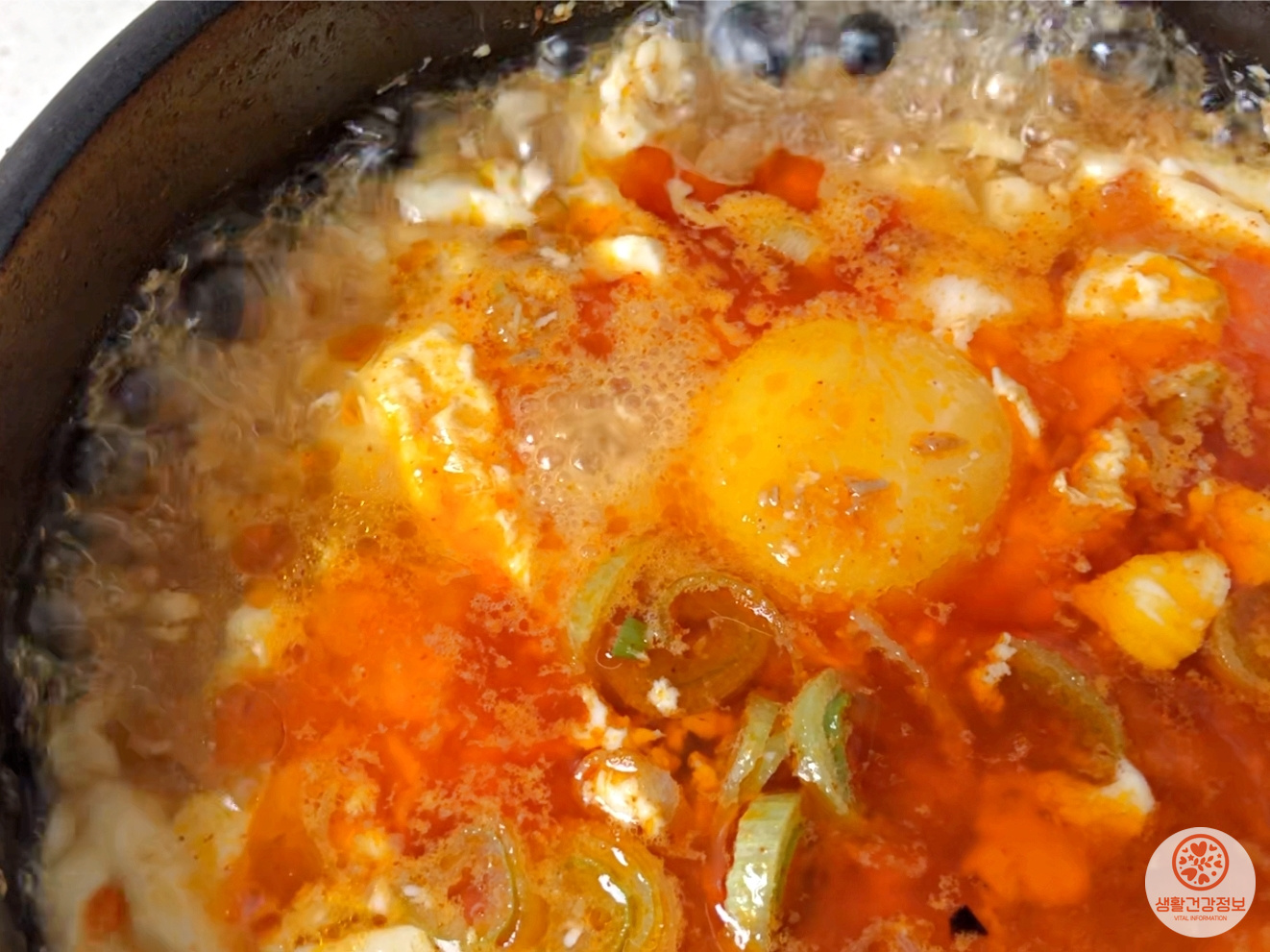 순두부찌개는 부드럽고 칼칼한 맛으로