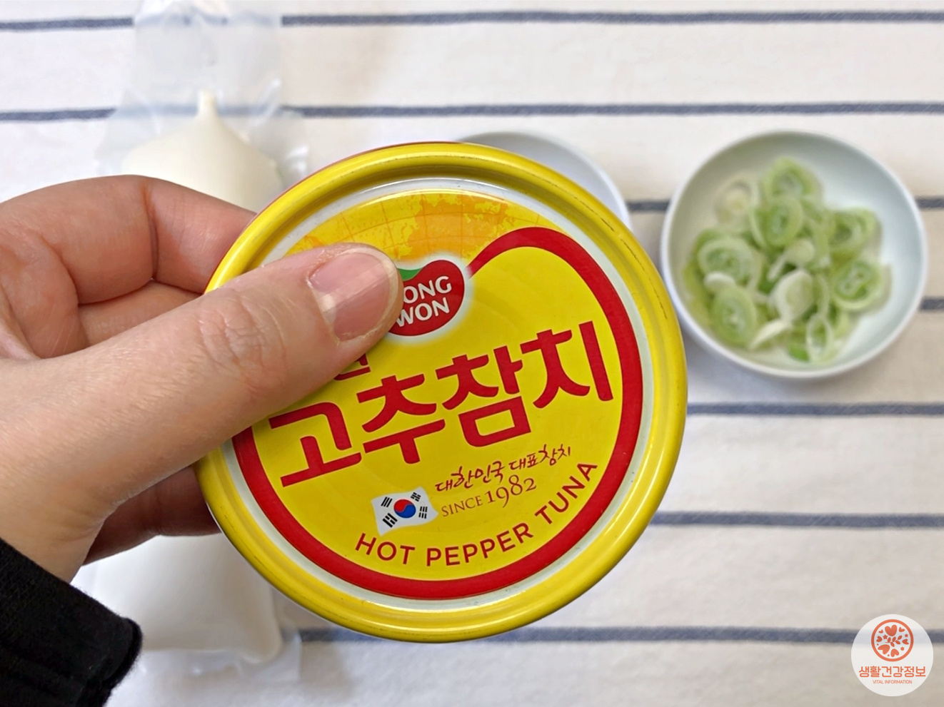 고추참치 큰사이즈 한캔을 넣고 볶아주세요.
