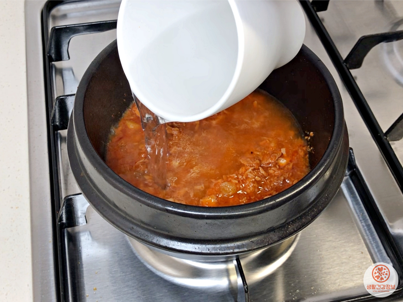 종이컵으로 한컵 분량의 물을 넣고 끓여주세요.
