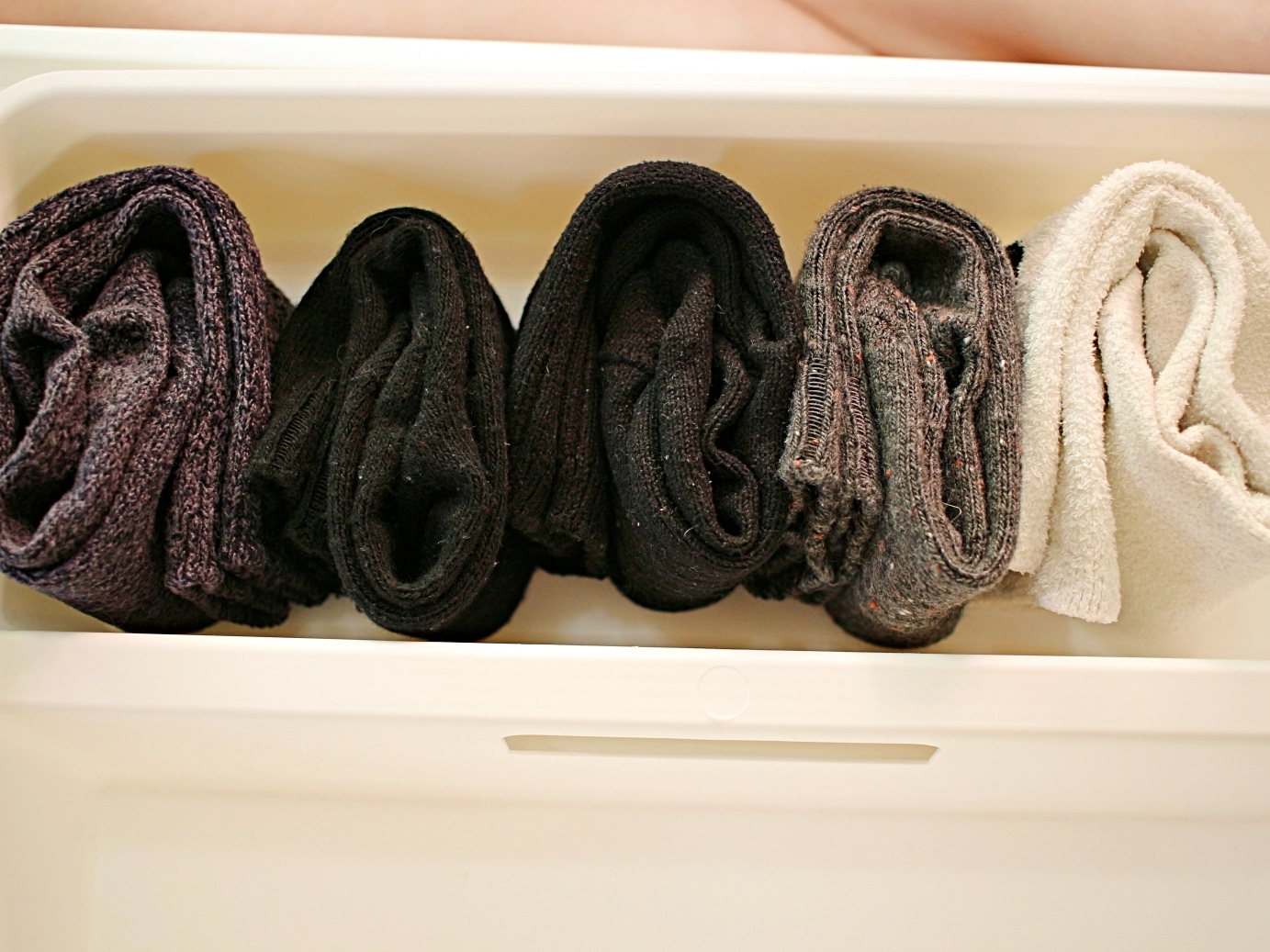 양말을 동그랗게 말아서 원통형으로 정리하는 방법이에요.