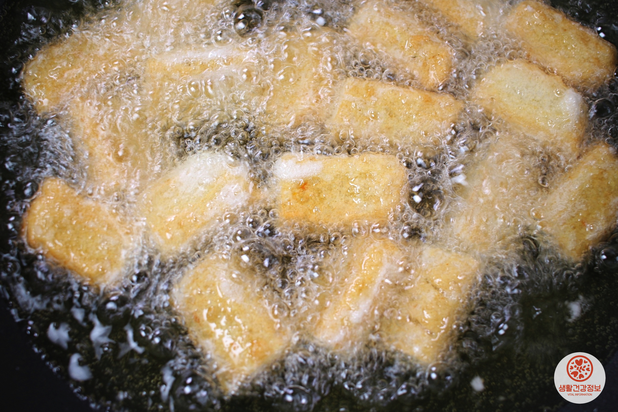 기름을 넉넉하게 붓고 어묵을 튀겨주는데요.