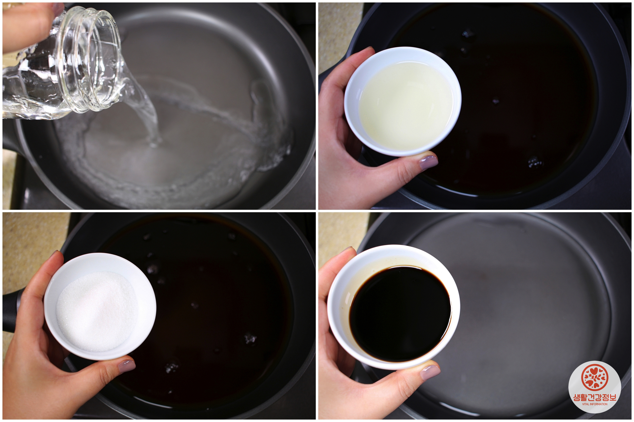 물300ml, 식초3큰술, 설탕5큰술, 간장 5큰술을 넣고