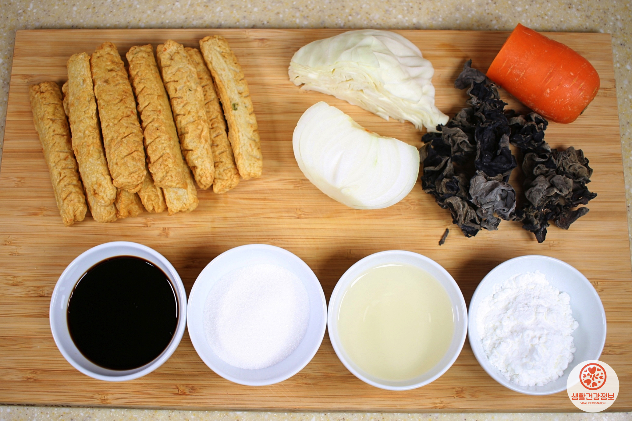 어묵, 양파, 목이버섯, 양배추, 당근,