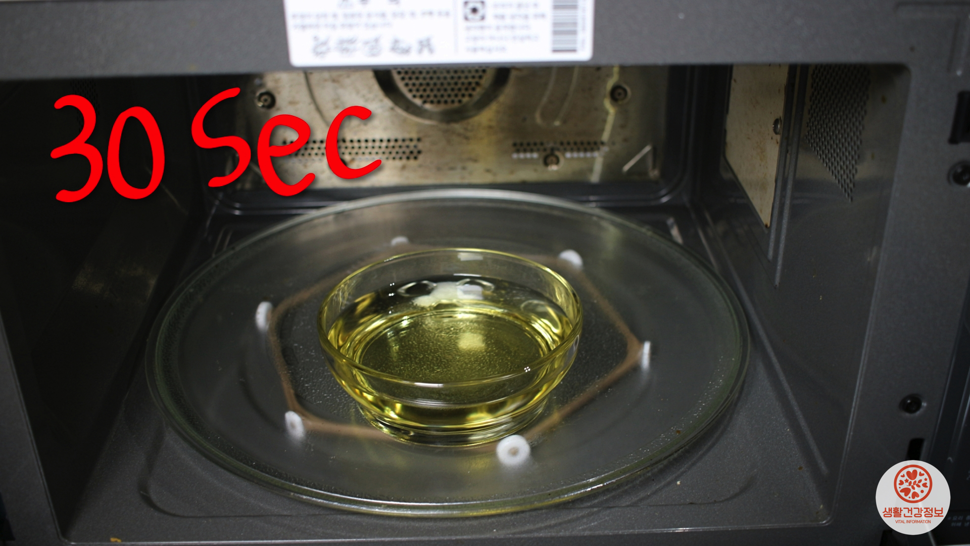 전자레인지로 식초를 30초만 데워주세요.