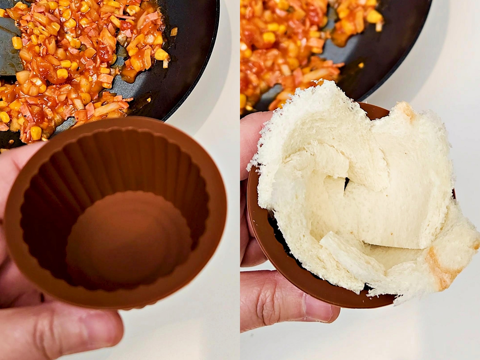 준비한 식빵을 머핀 틀 또는 컵케이크 틀에 넣어