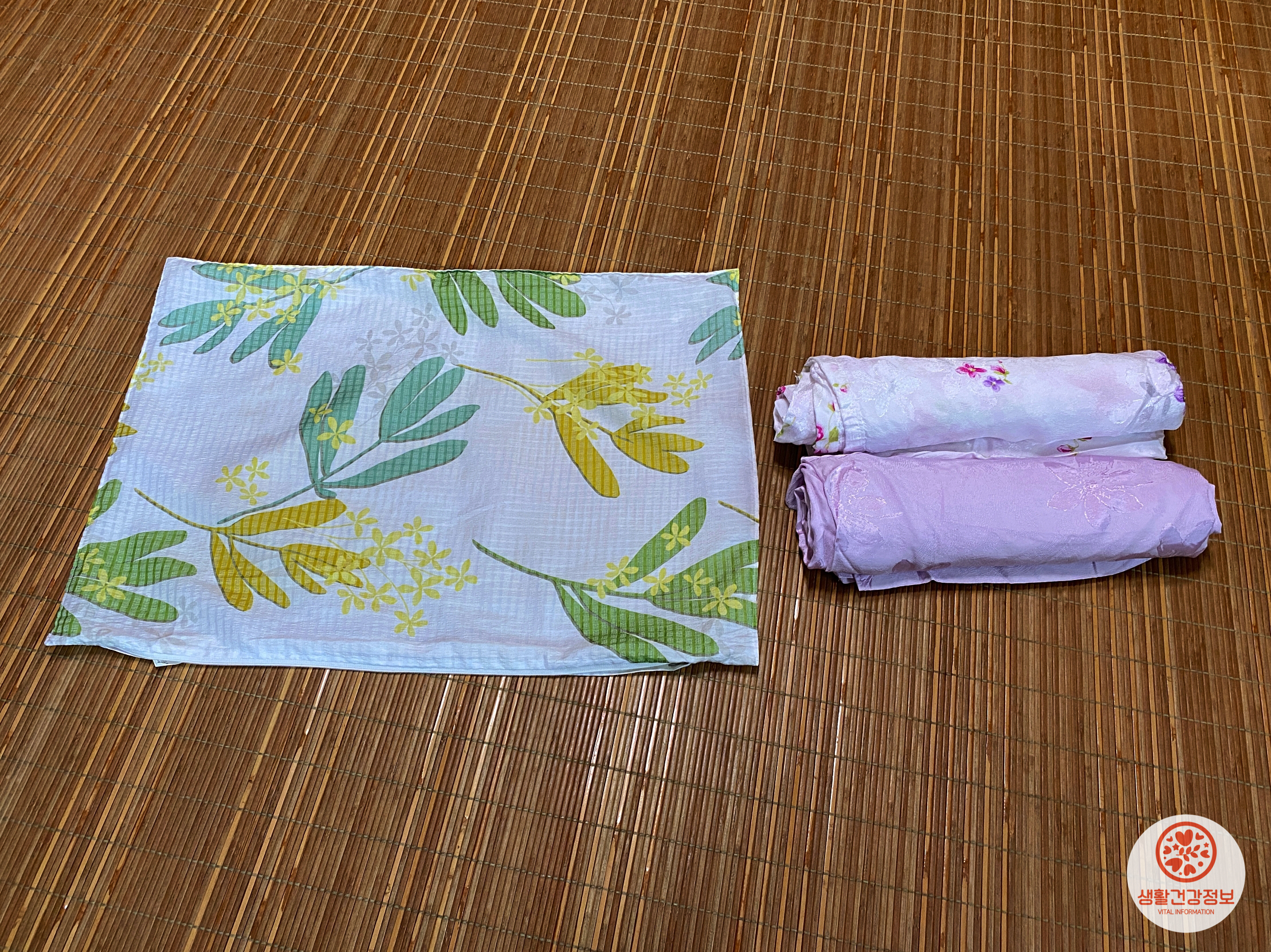깨끗하게 세탁한 베개커버에 여름이불을 넣고
