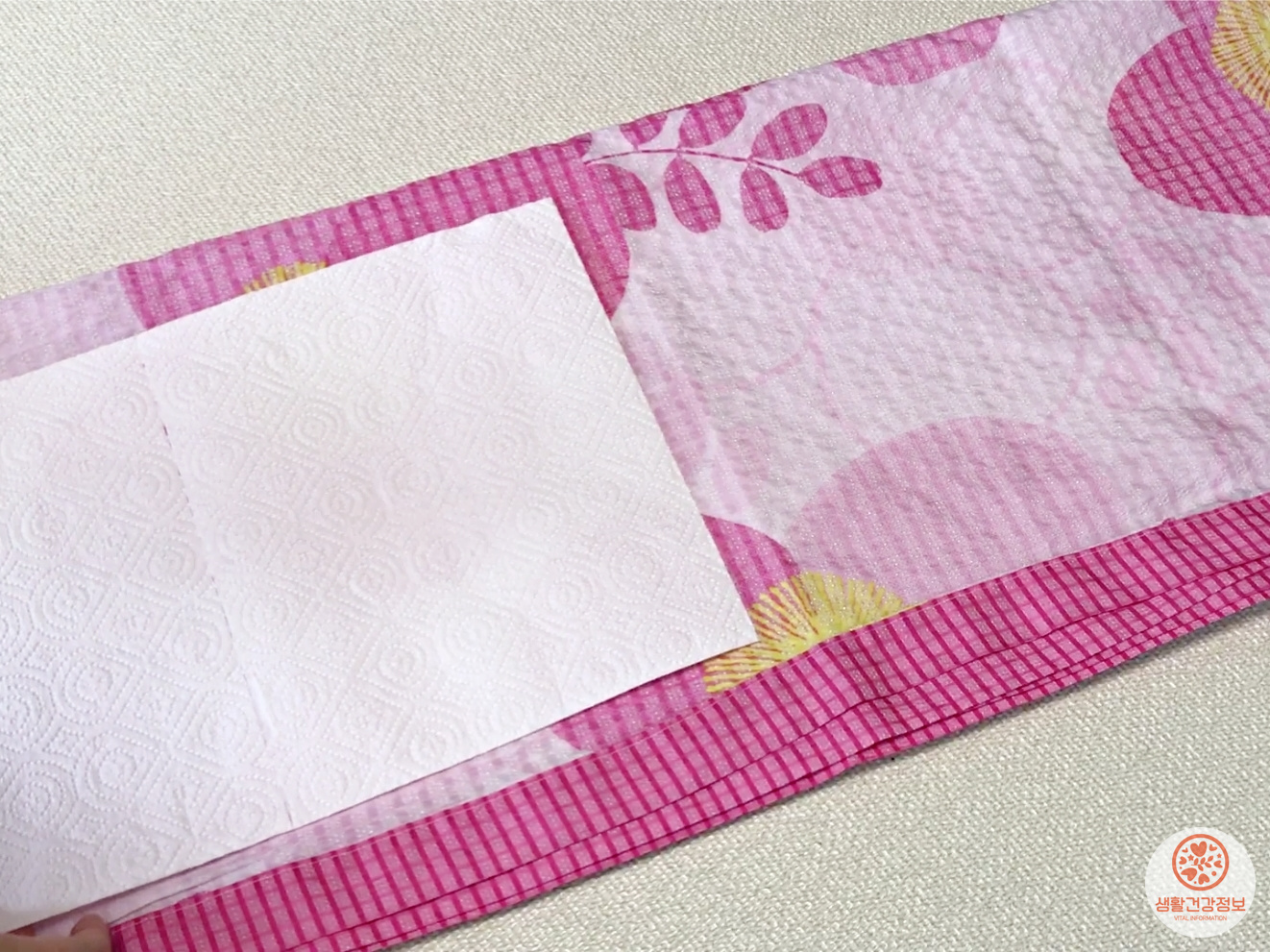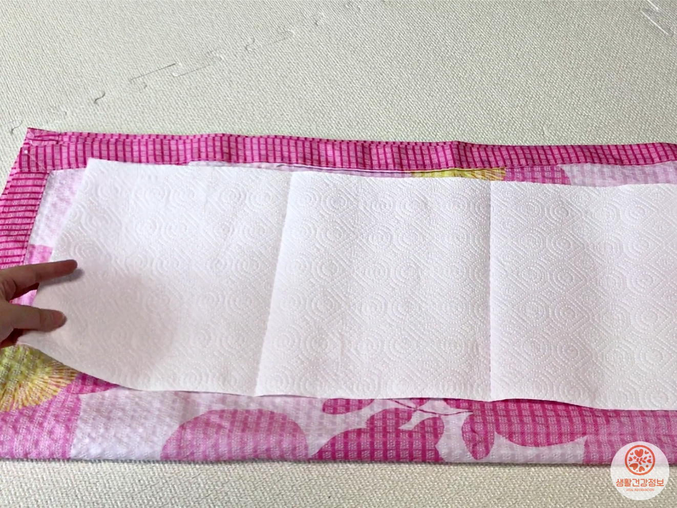 이불 사이에 키친타월을 넣어서 접어주시고요.