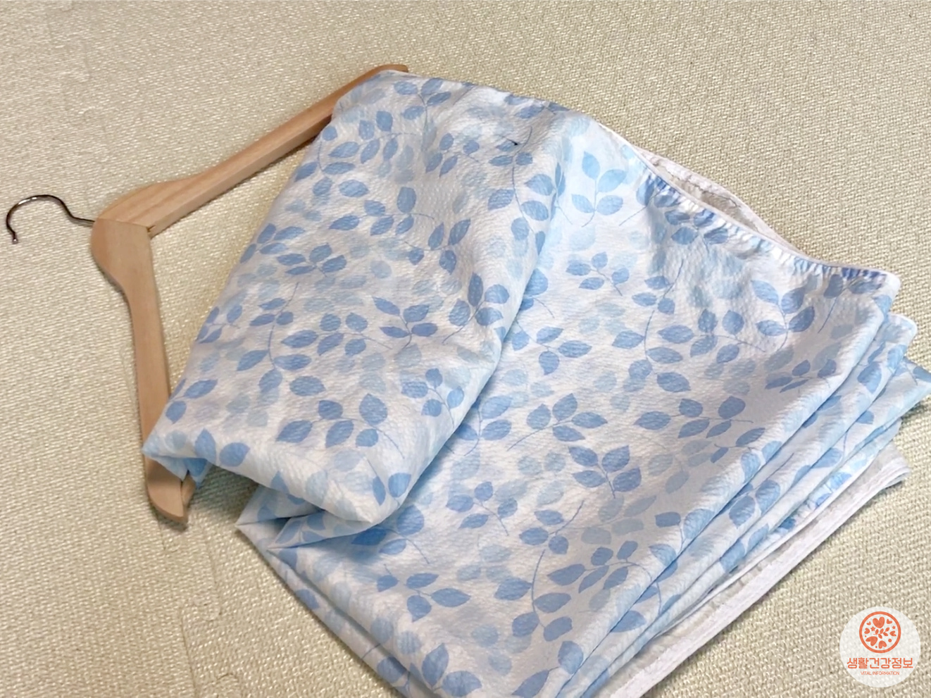 옷걸이의 폭에 맞춰서 접은 여름이불을