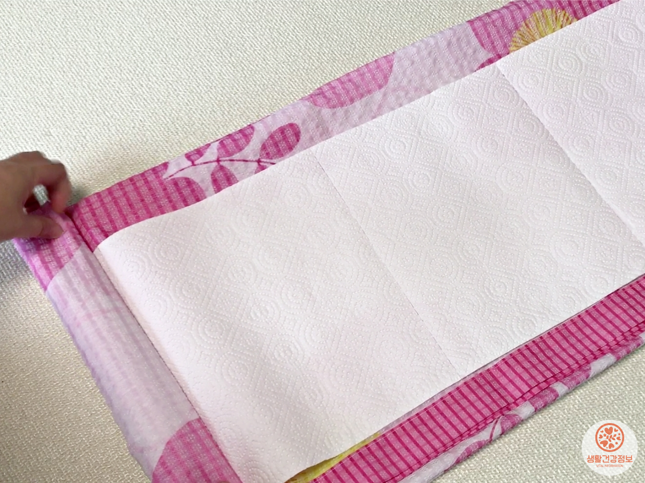 이불 사이에 키친타월을 넣어서 접어주시고요.
