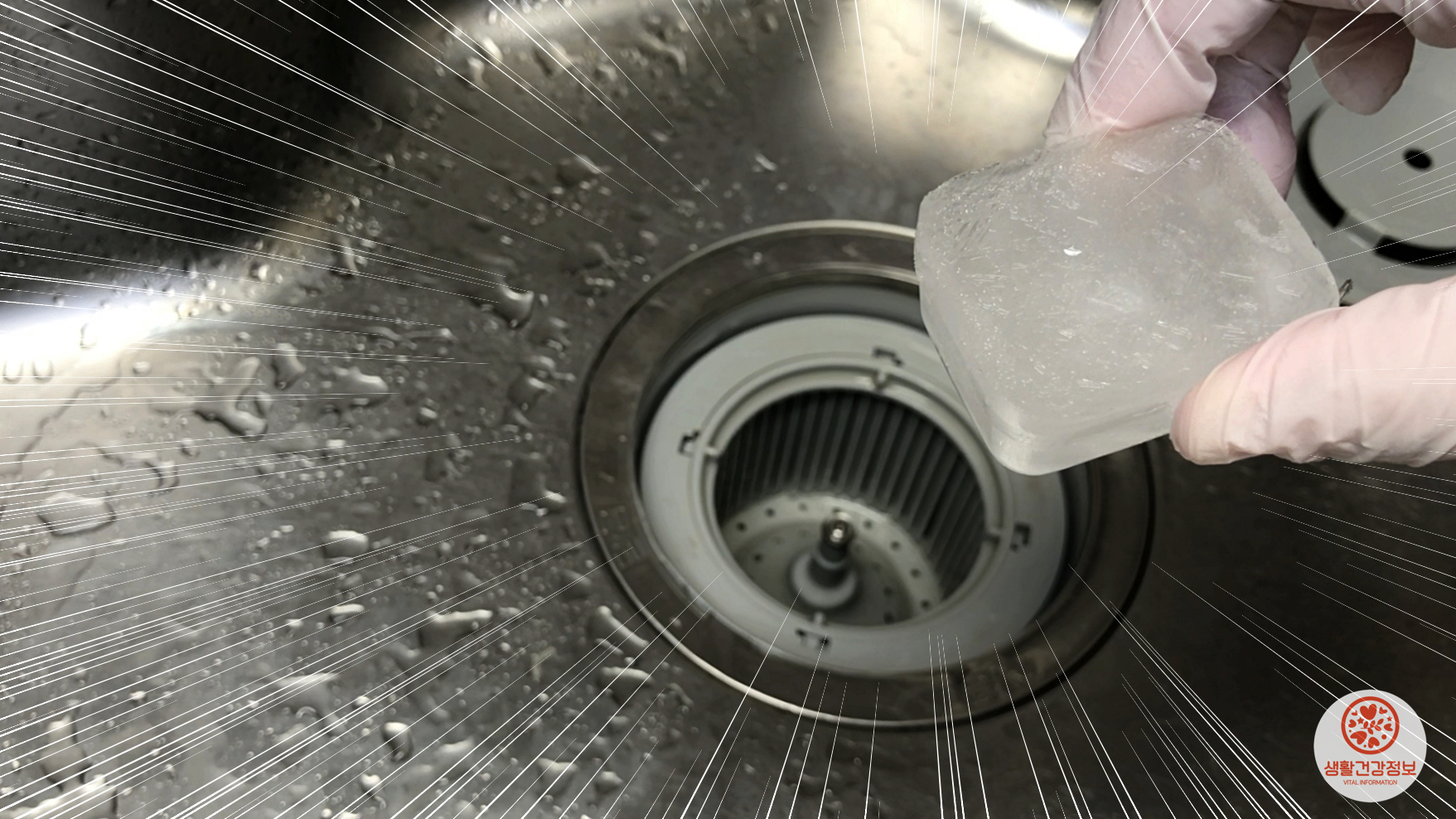 탈취 얼음이 만들어지는 동안 배수구를 청소했어요.