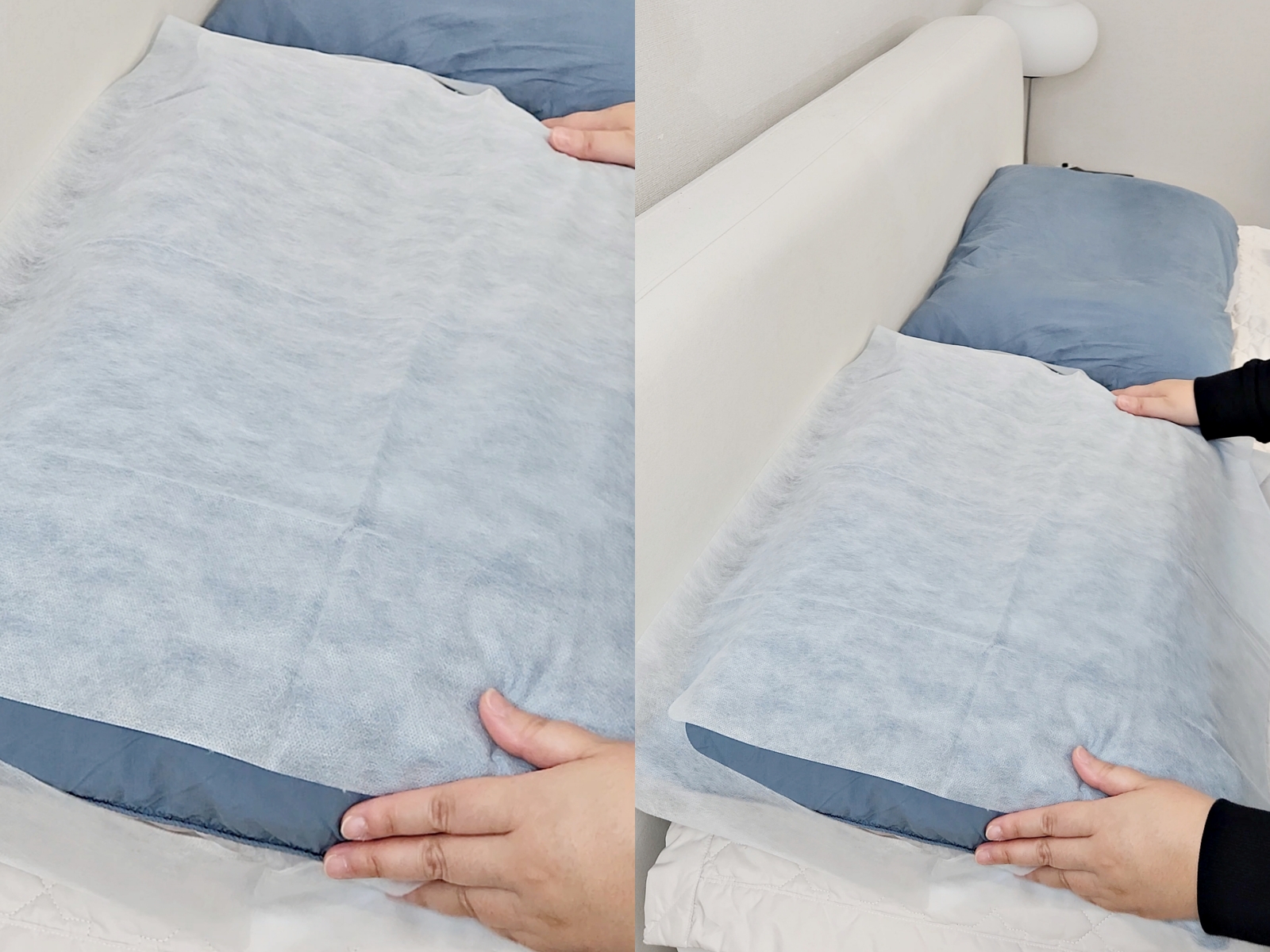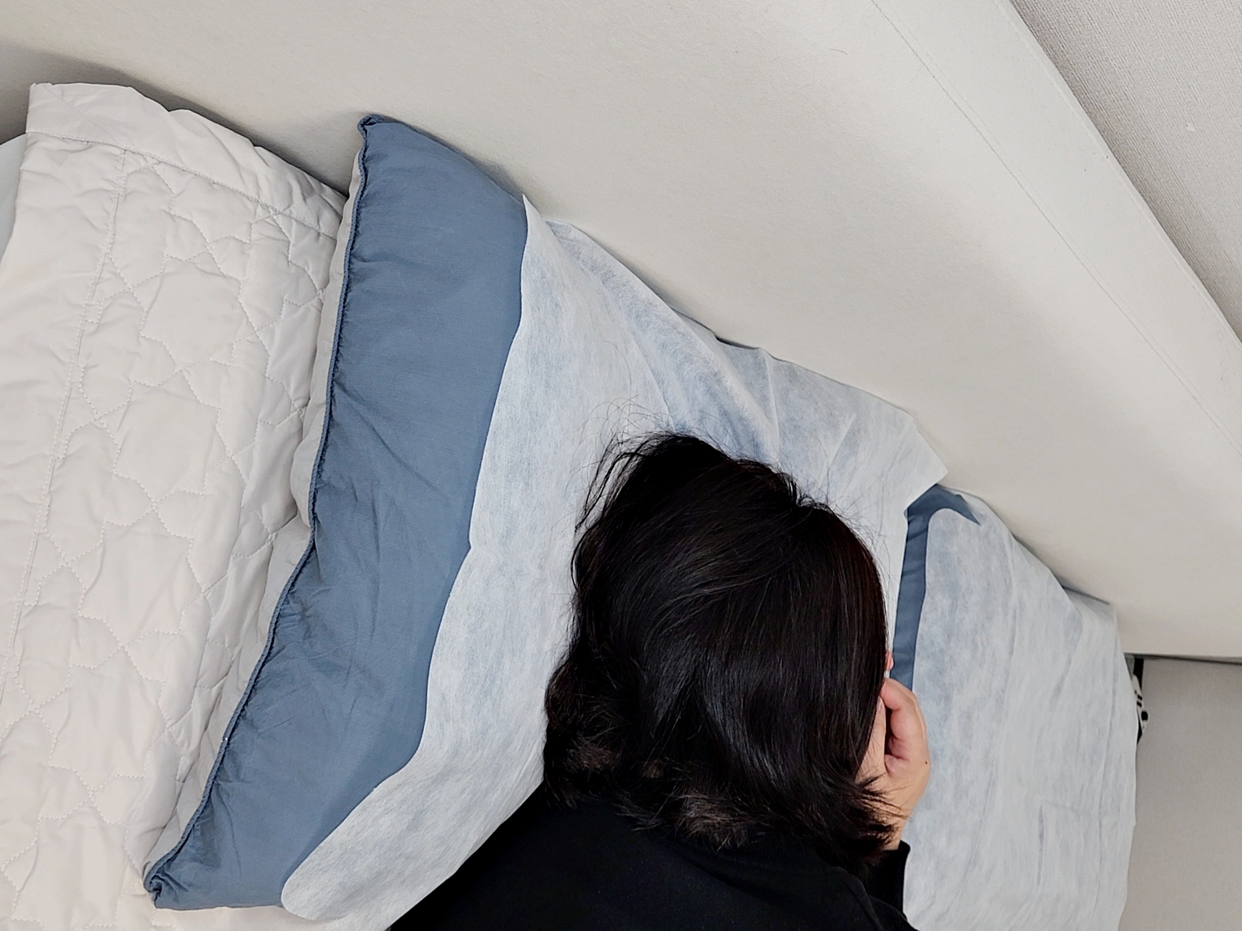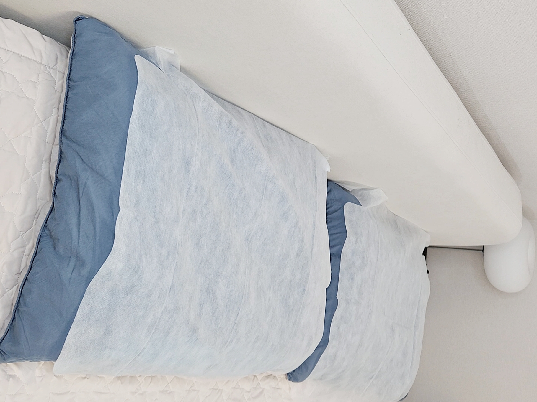 티슈처럼 가볍게 톡 뽑아서 쓰는 일회용 베개커버예요.