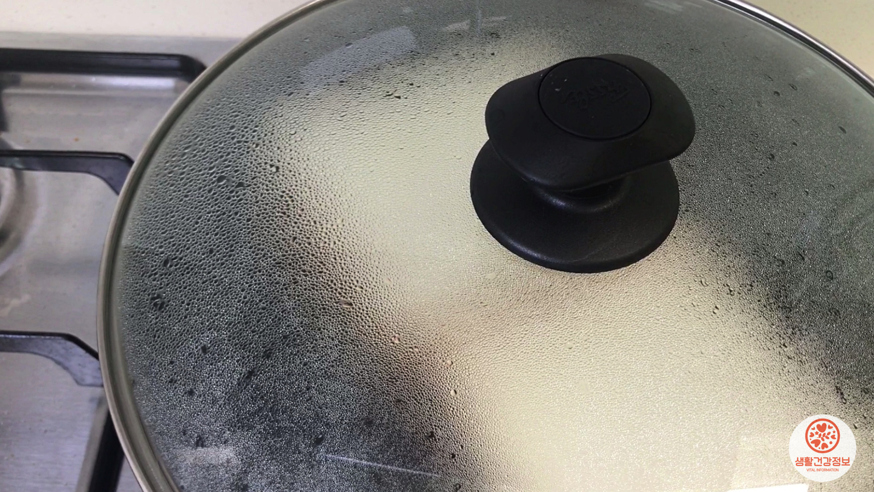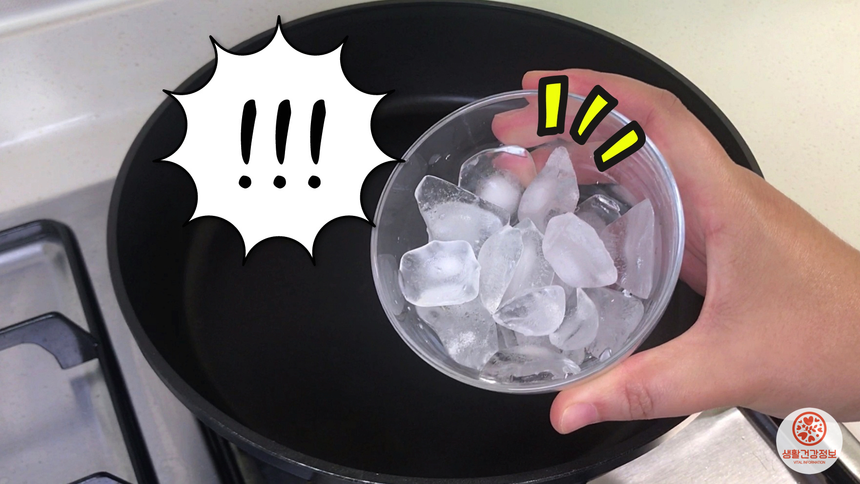 얼음을 넣고 뚜껑을 닫아서 구우면