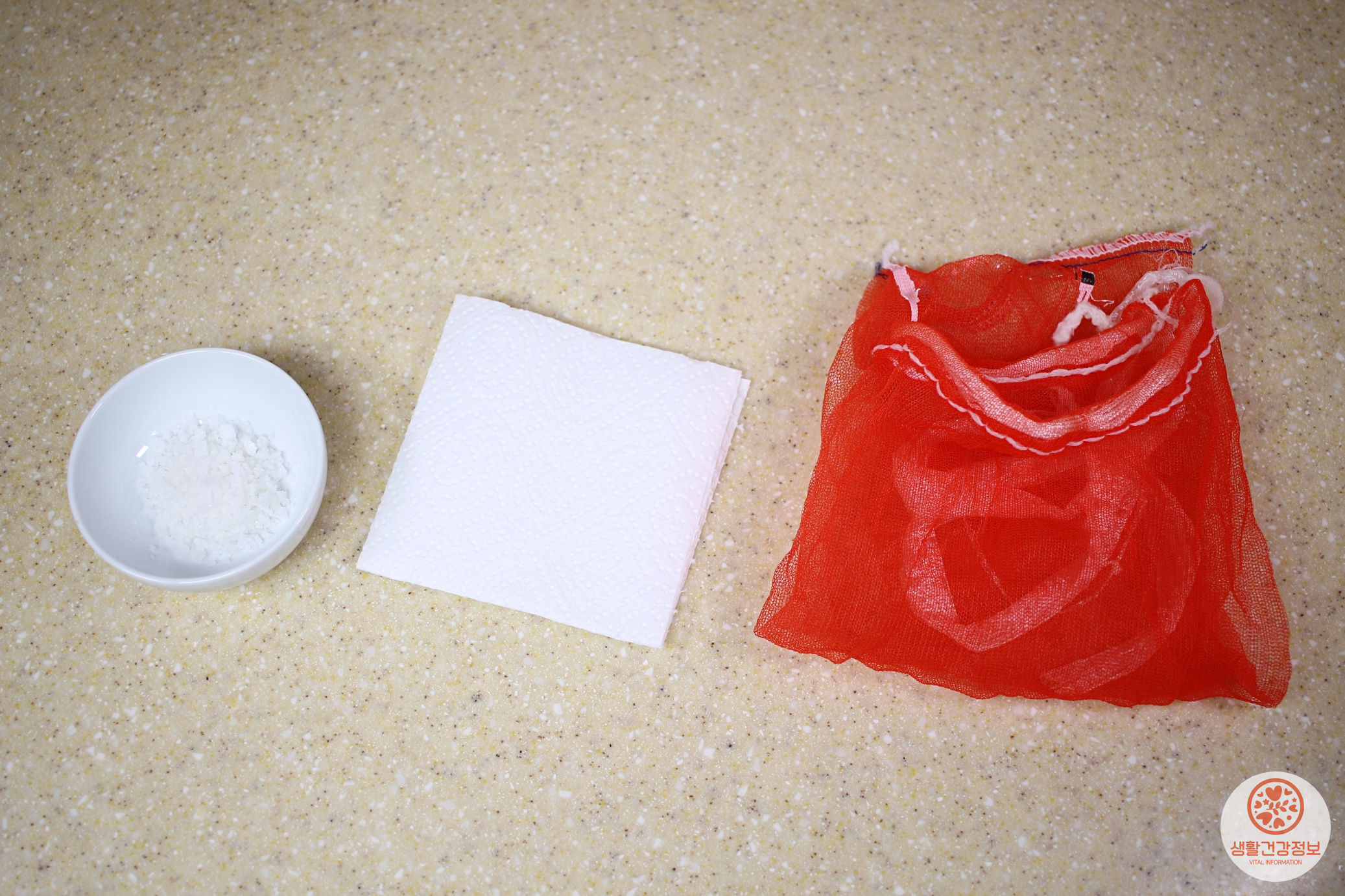 굵은소금, 키친타월, 양파망 아무거나 골라보세요.