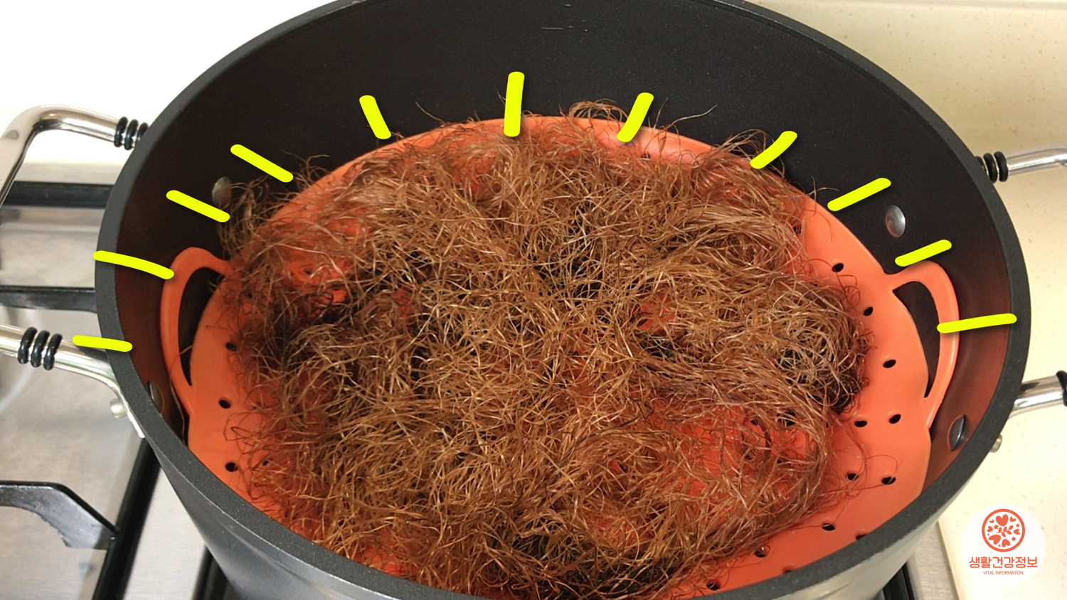 옥수수수염을 모아서 위로 쭉 뽑으면