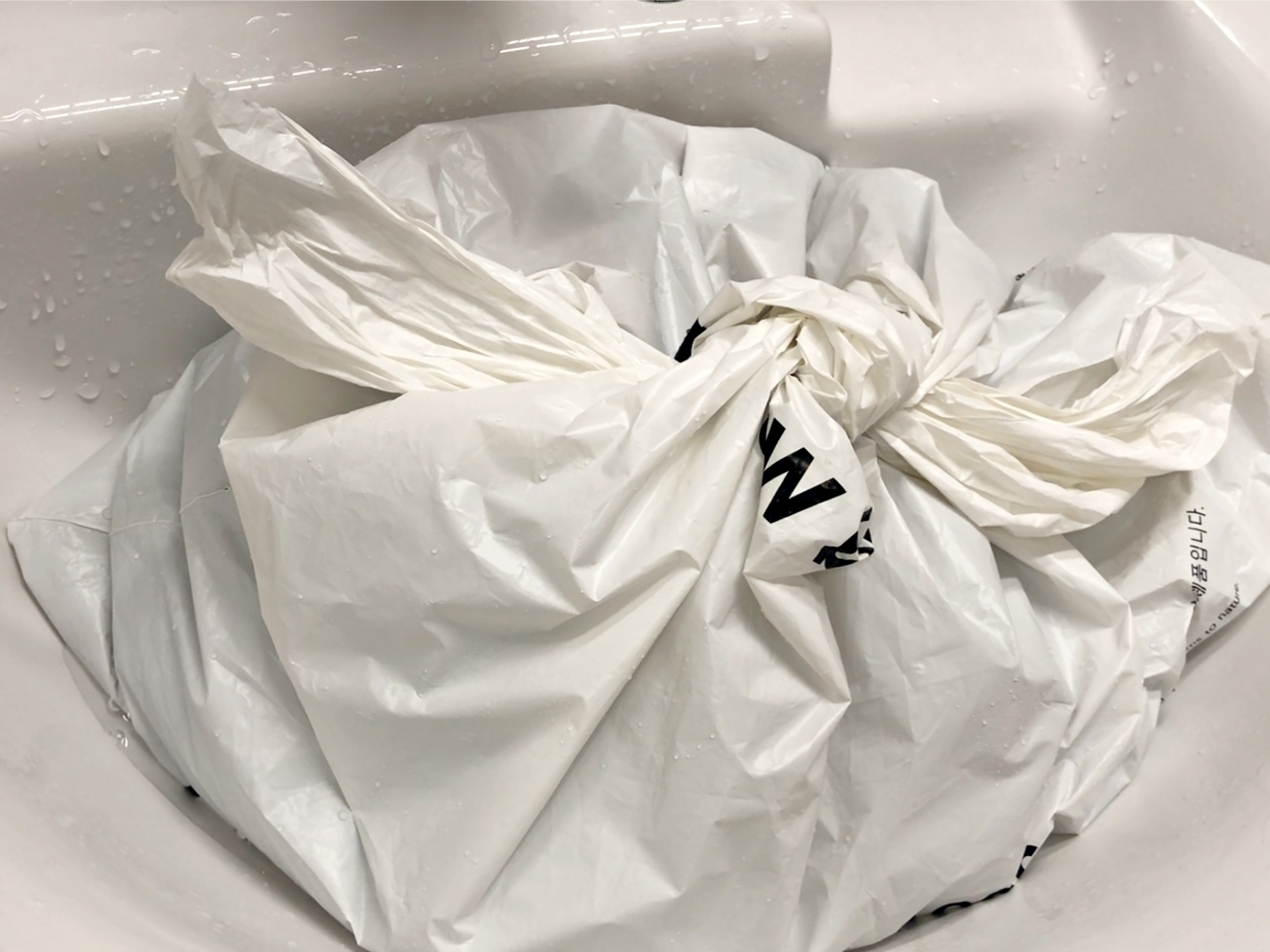 비닐봉지 입구를 묶고 한번 더 흔들어서