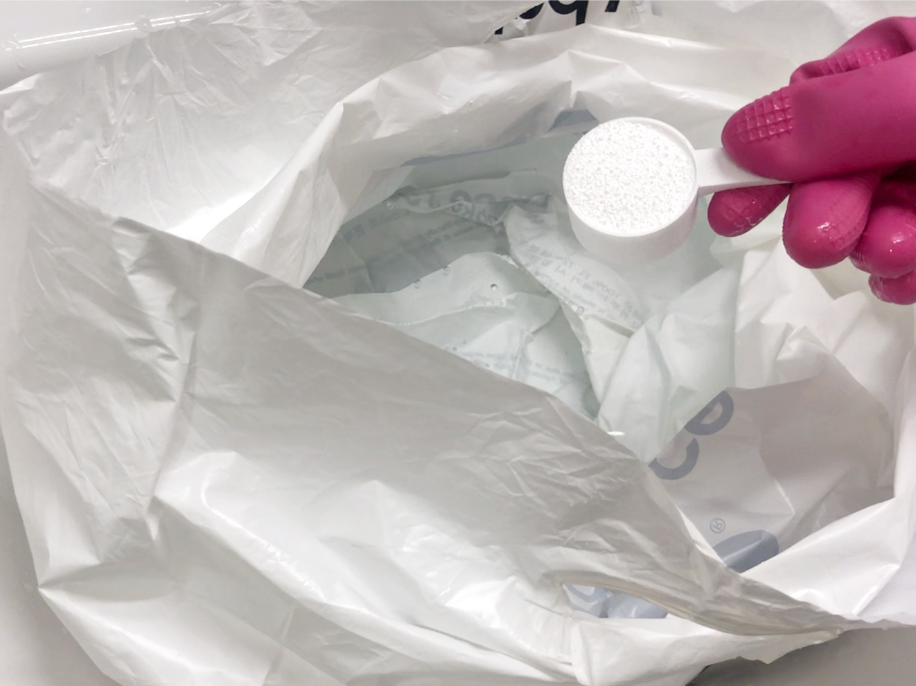 비닐봉지를 살살 흔들어서 과탄산소다를 녹인 다음
