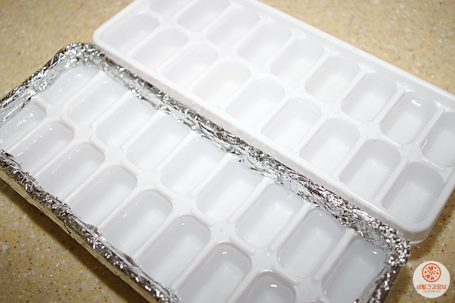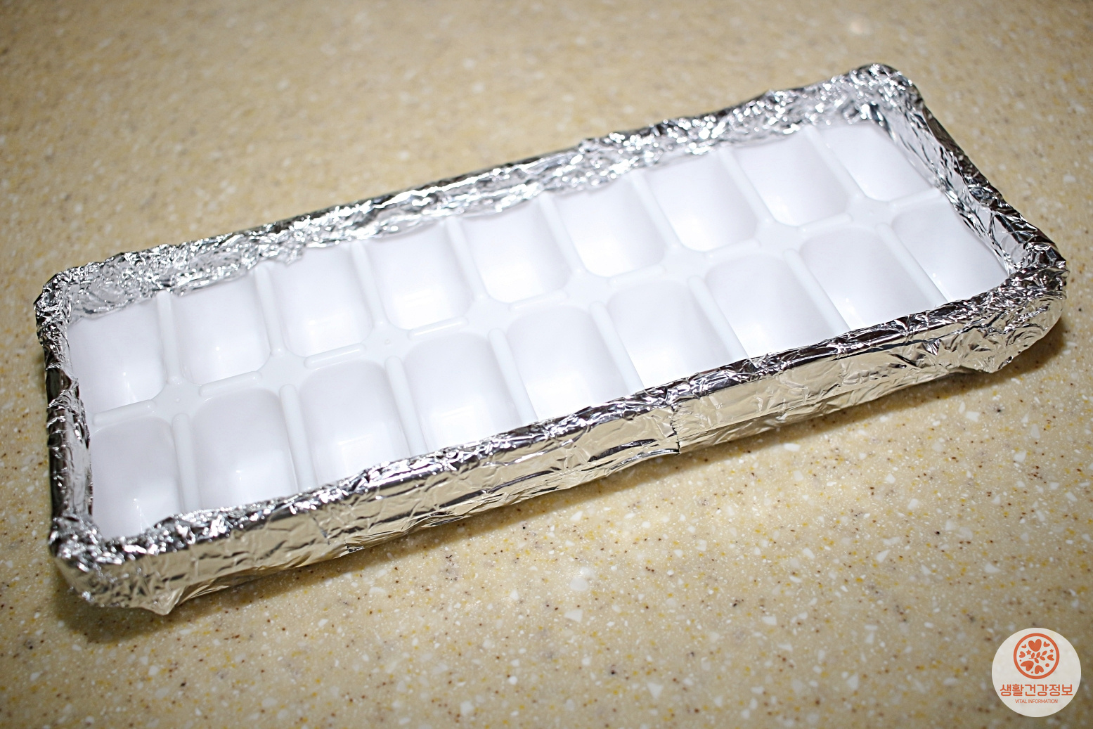 얼음틀 전체를 호일로 감싸주세요.