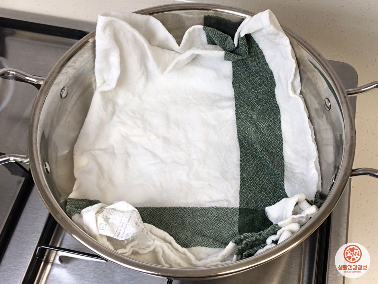 깨끗한 행주를 냄비 바닥에 깔아두면