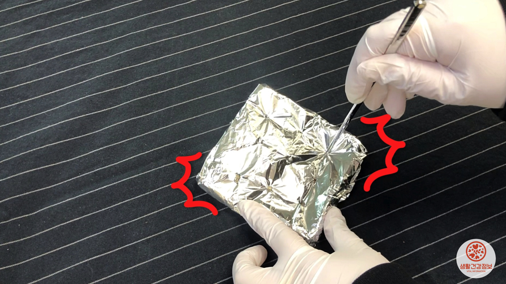 냄새를 빨아들일 구멍을 여러개 뚫어주세요.
