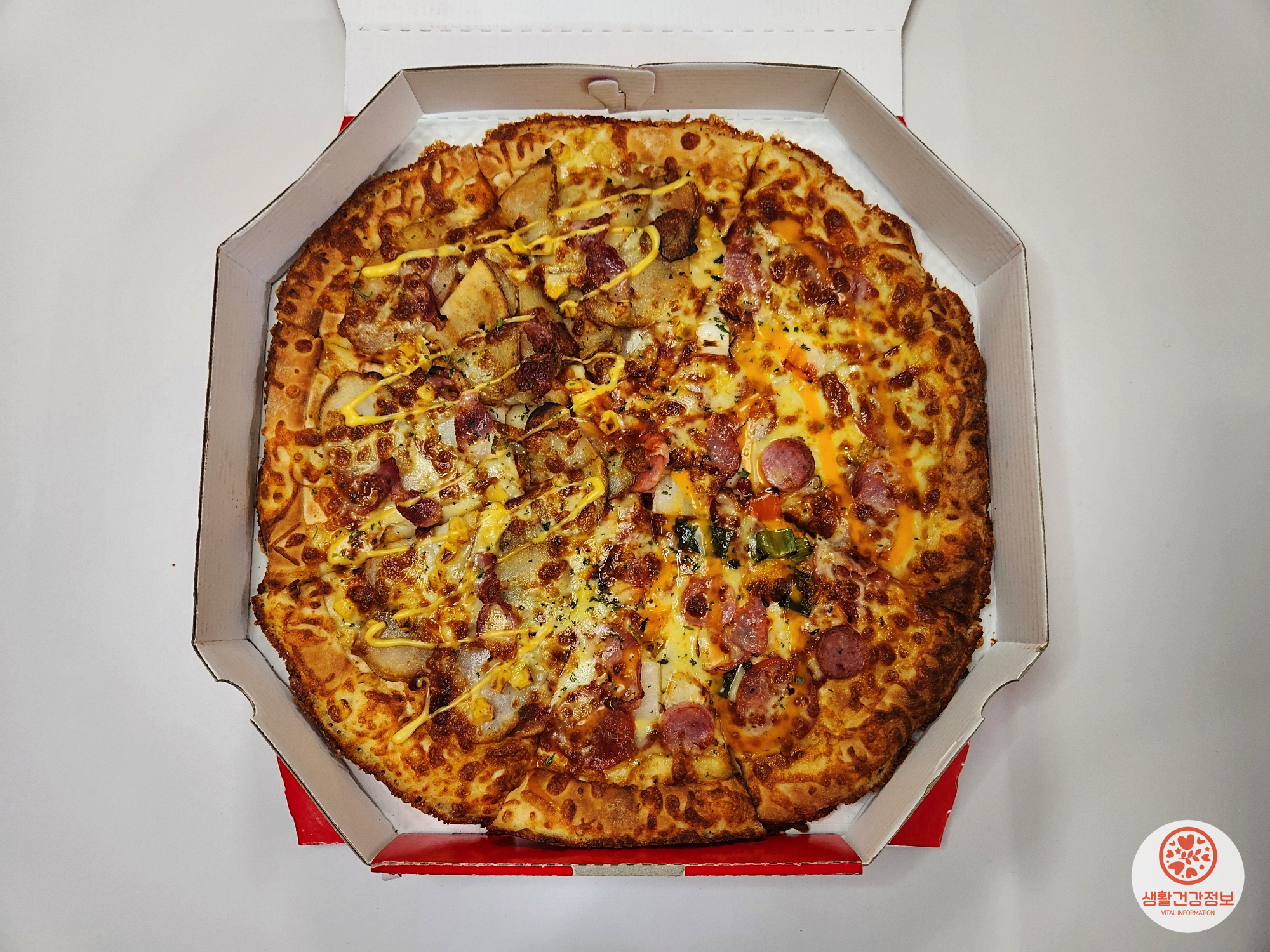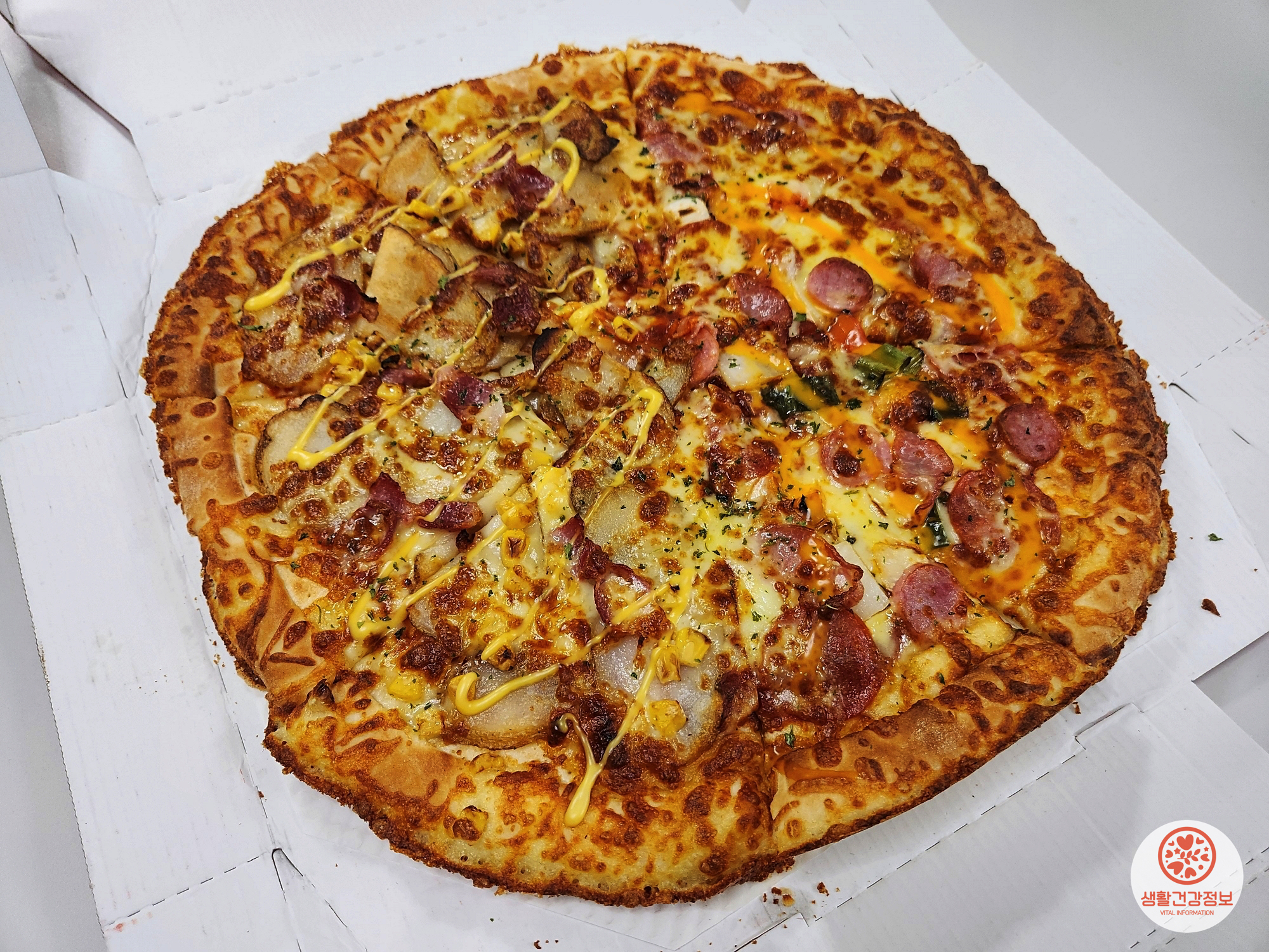 라지사이즈에 두가지 맛이 담긴 피자인데요.