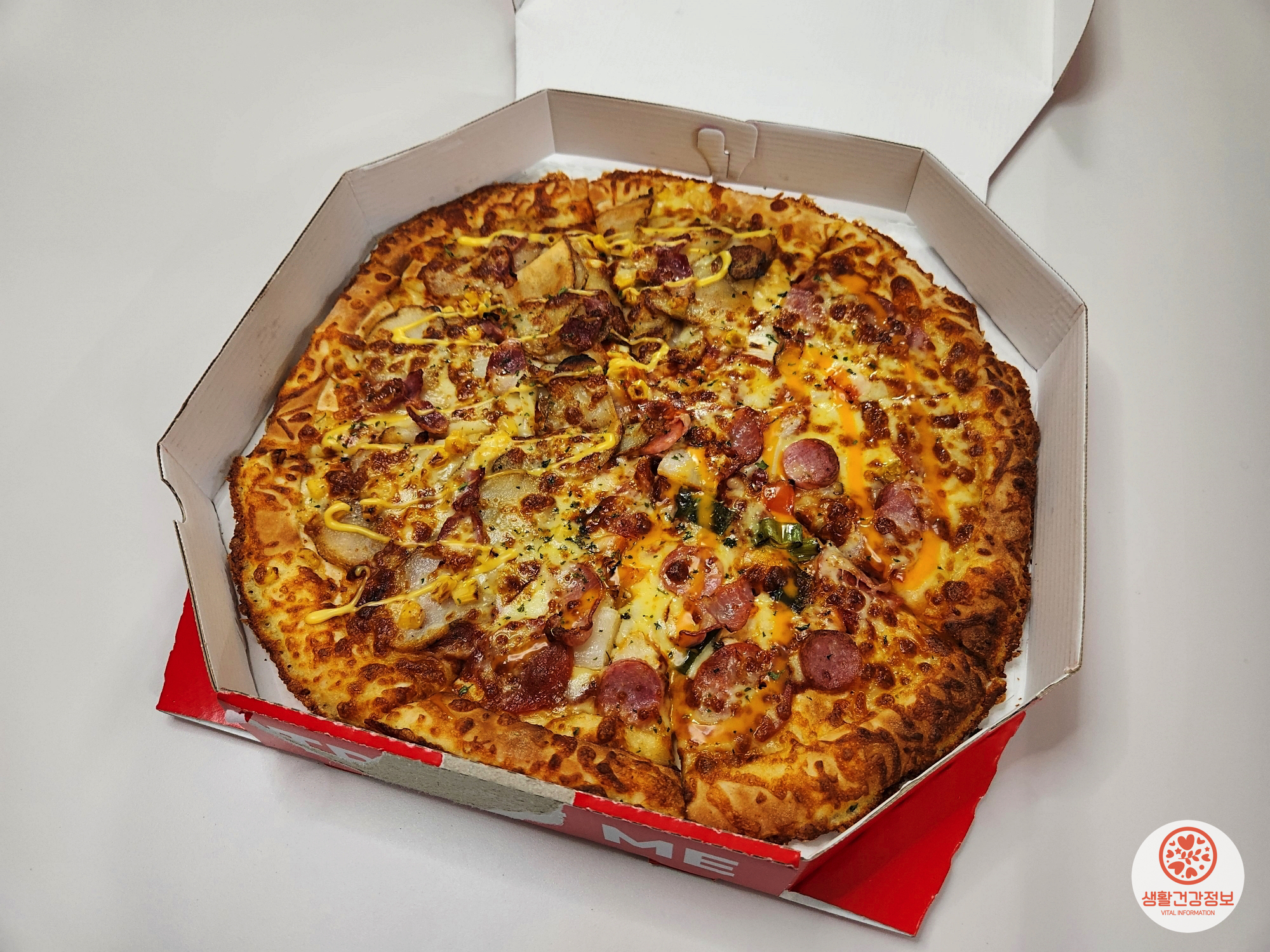 라지사이즈에 두가지 맛이 담긴 피자인데요.