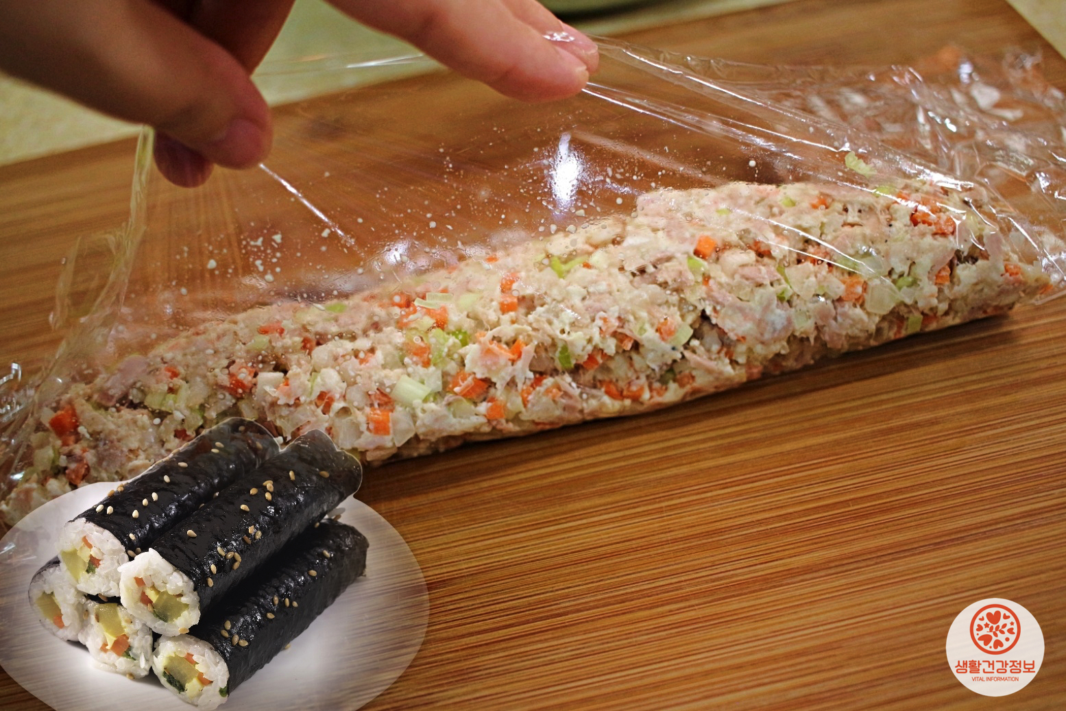 왼쪽은 조리용 투명랩을 사용해서