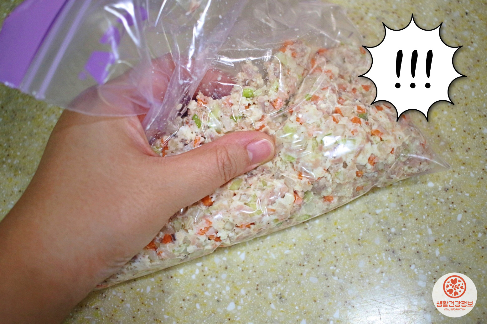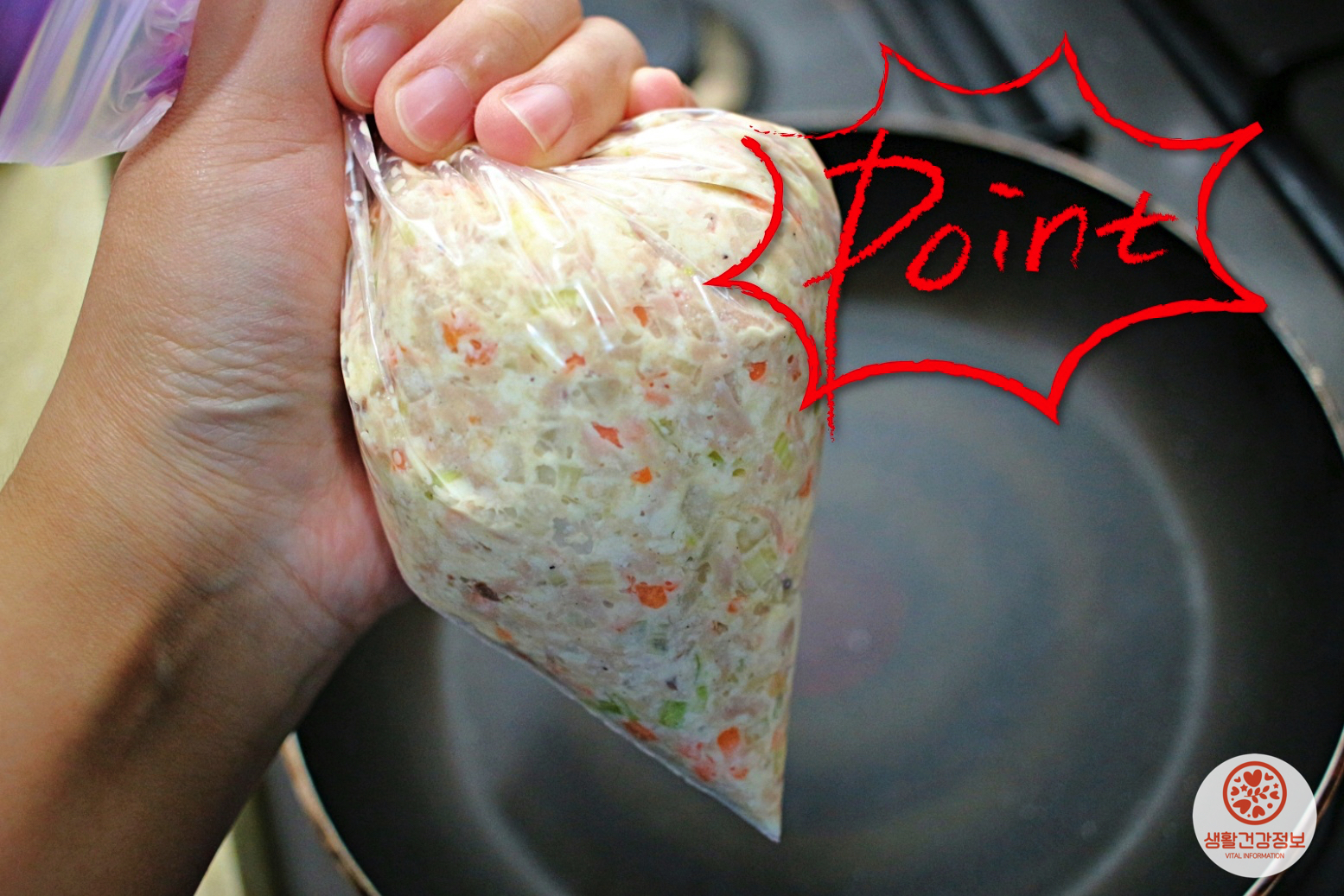 지퍼백 속에 동그랑땡 반죽을 채워주는데요.