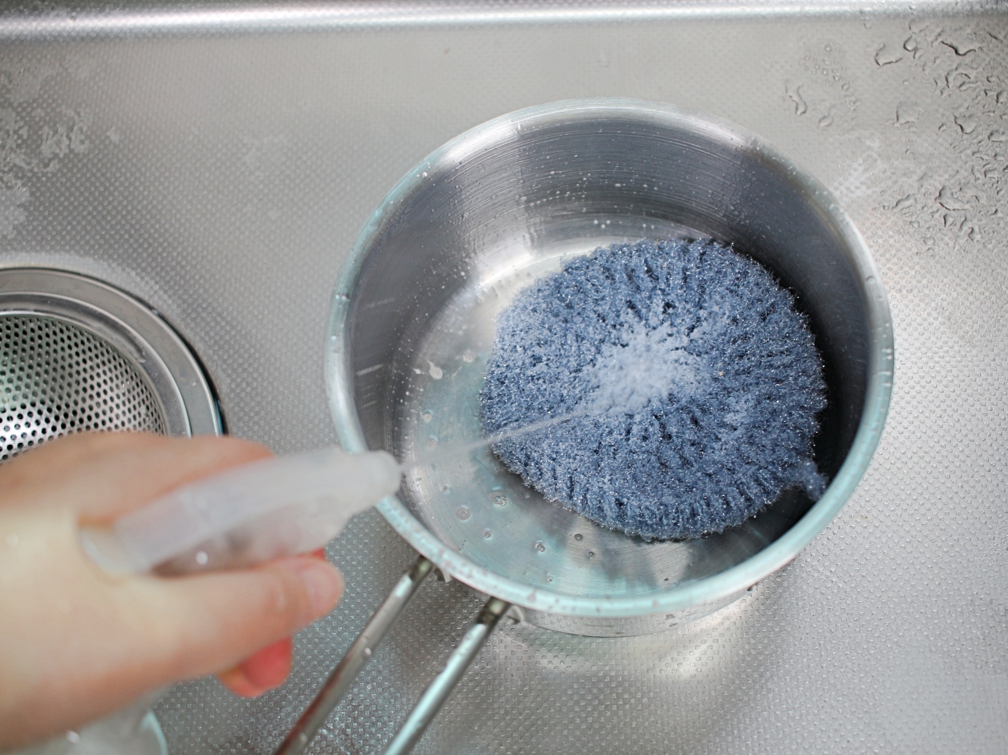 이걸 수세미에 뿌려서 평소처럼 설거지를 하면 끝이에요.
