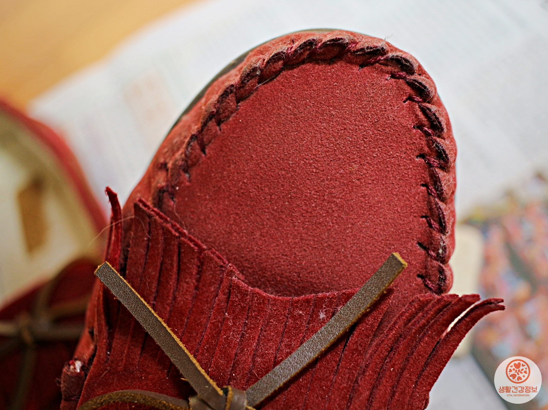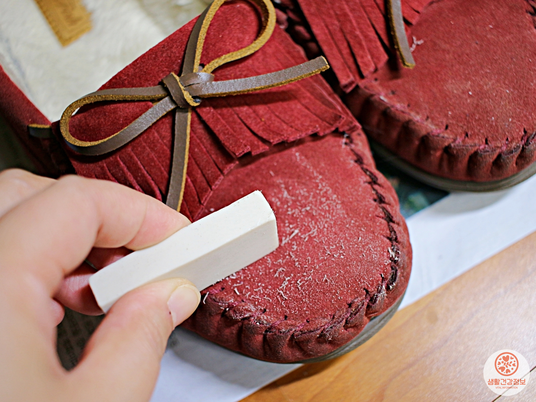 부드러운 지우개로 스웨이드 신발을 문지르면