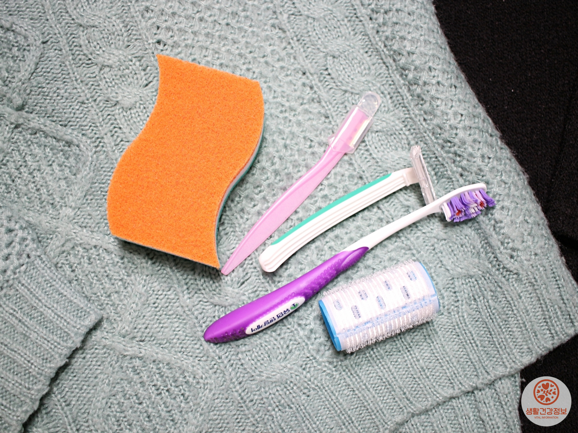 칫솔모를 짧게 잘라서 니트를 빗으면