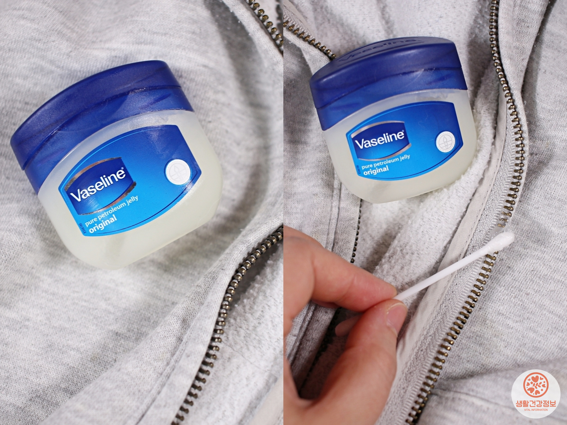 면봉에 바세린을 묻혀서 지퍼에 바르면