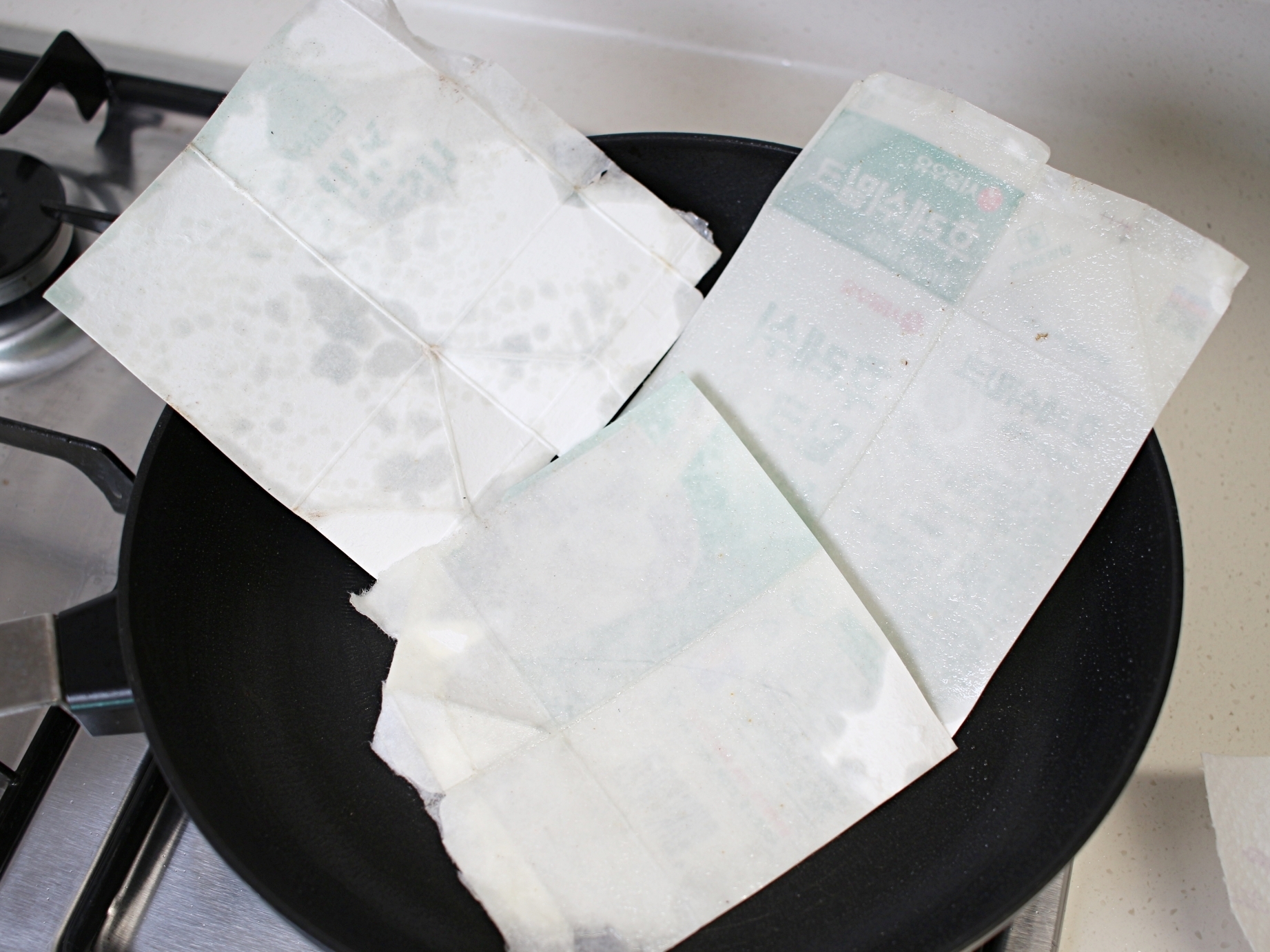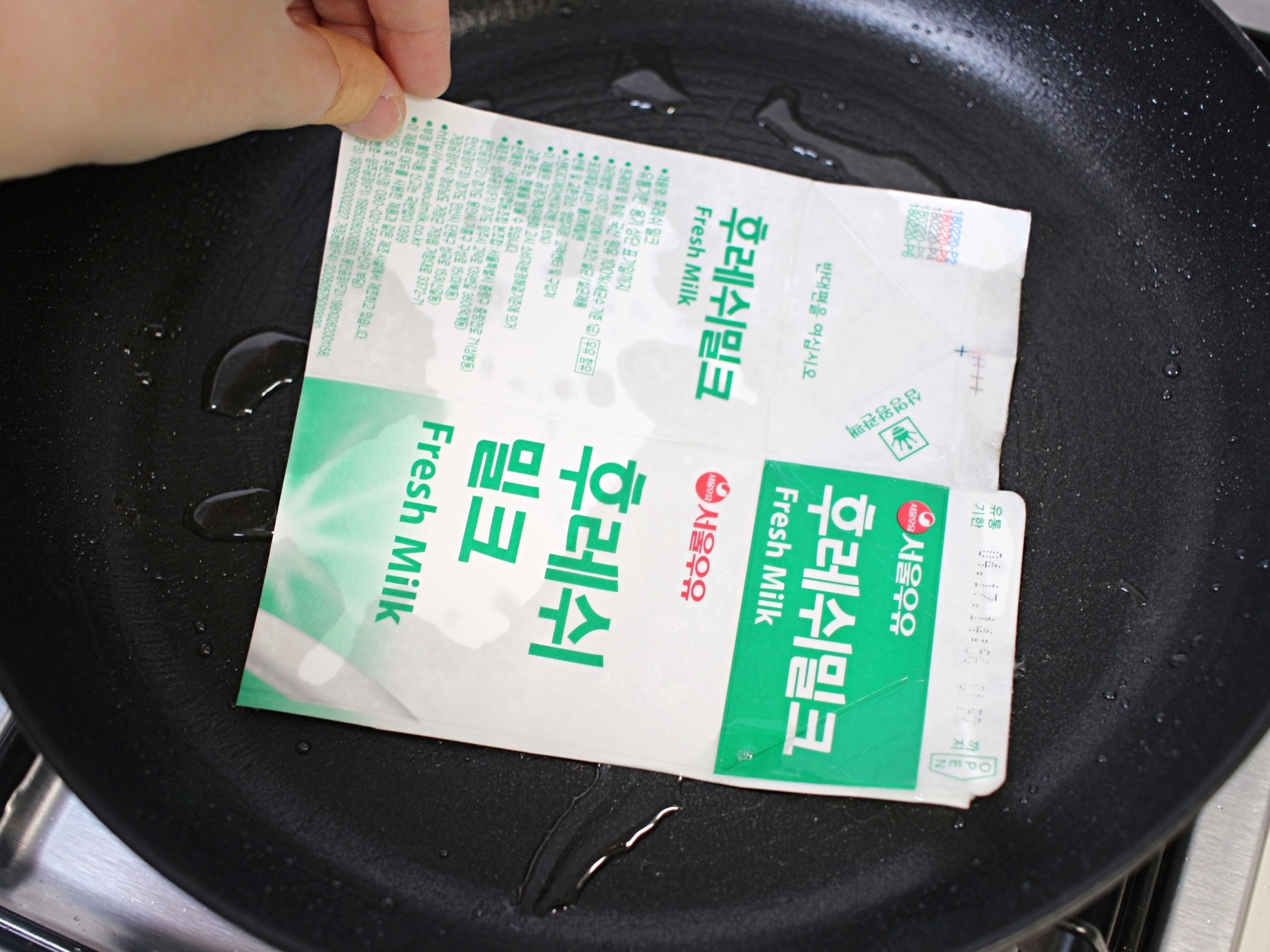 기름기 많은 후라이팬에 우유갑 종이를 덮으니까